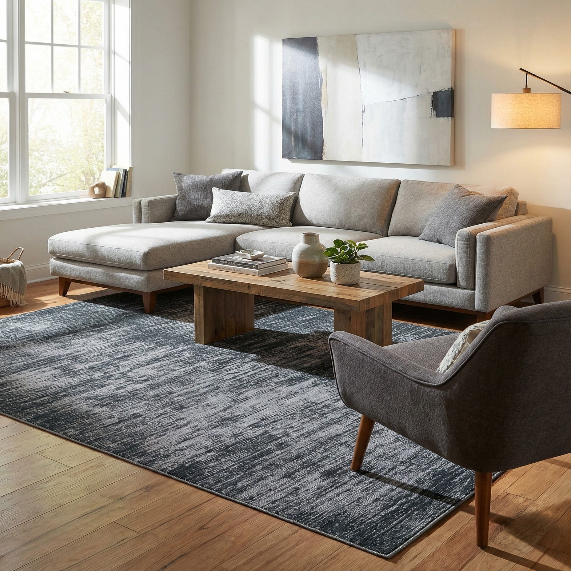 Primary color is Black. Colors in this rug include: Black, Ivory.