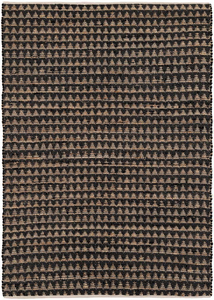 Primary color is Black. Colors in this rug include: Black, Natural.