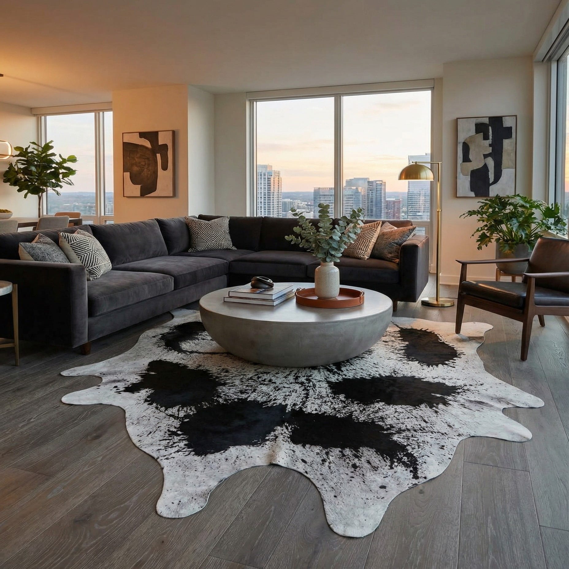 Primary image 7' 4 x 8' 1 Cowhide Leather Rug