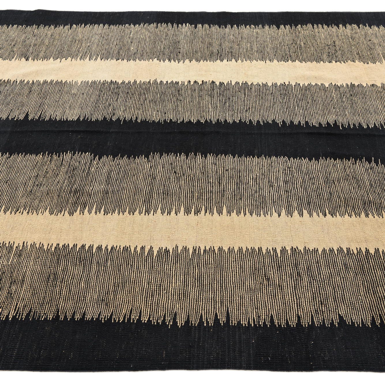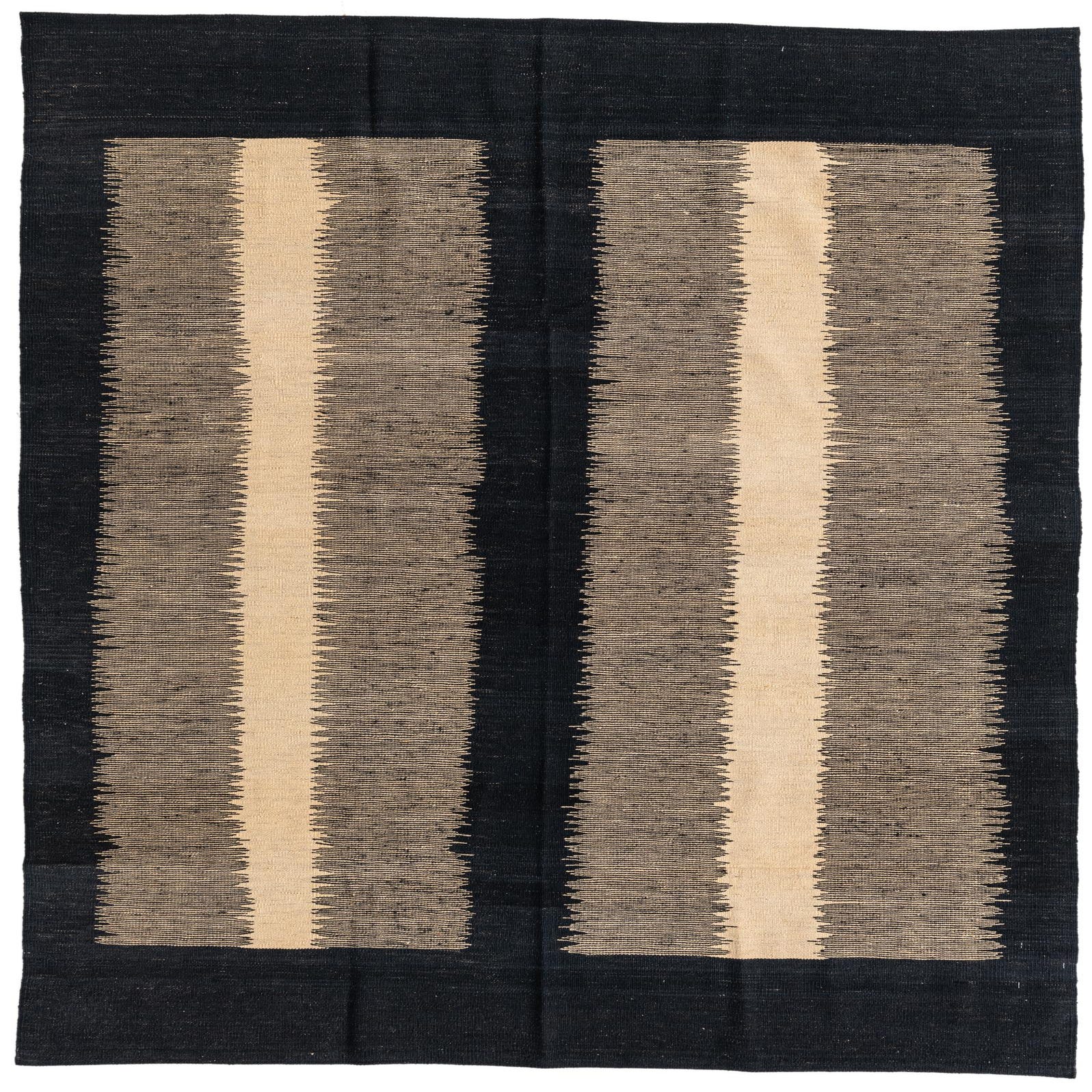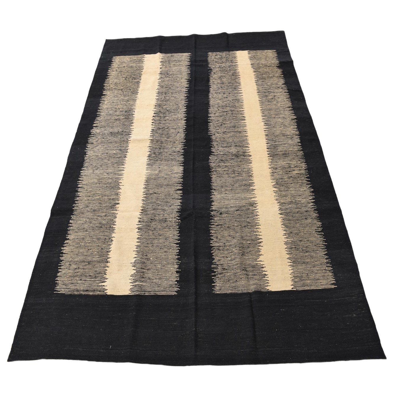 Primary color is Black. Colors in this rug include: Black, Ivory.