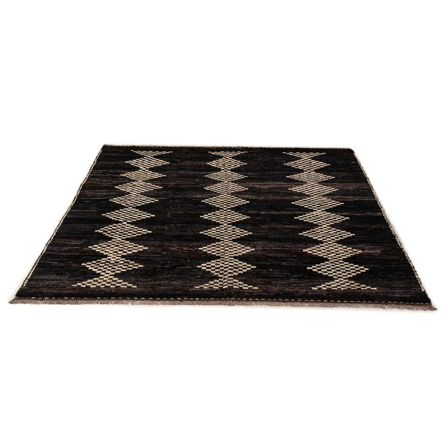 Primary color is Black. Colors in this rug include: Black, Brown, Ivory.