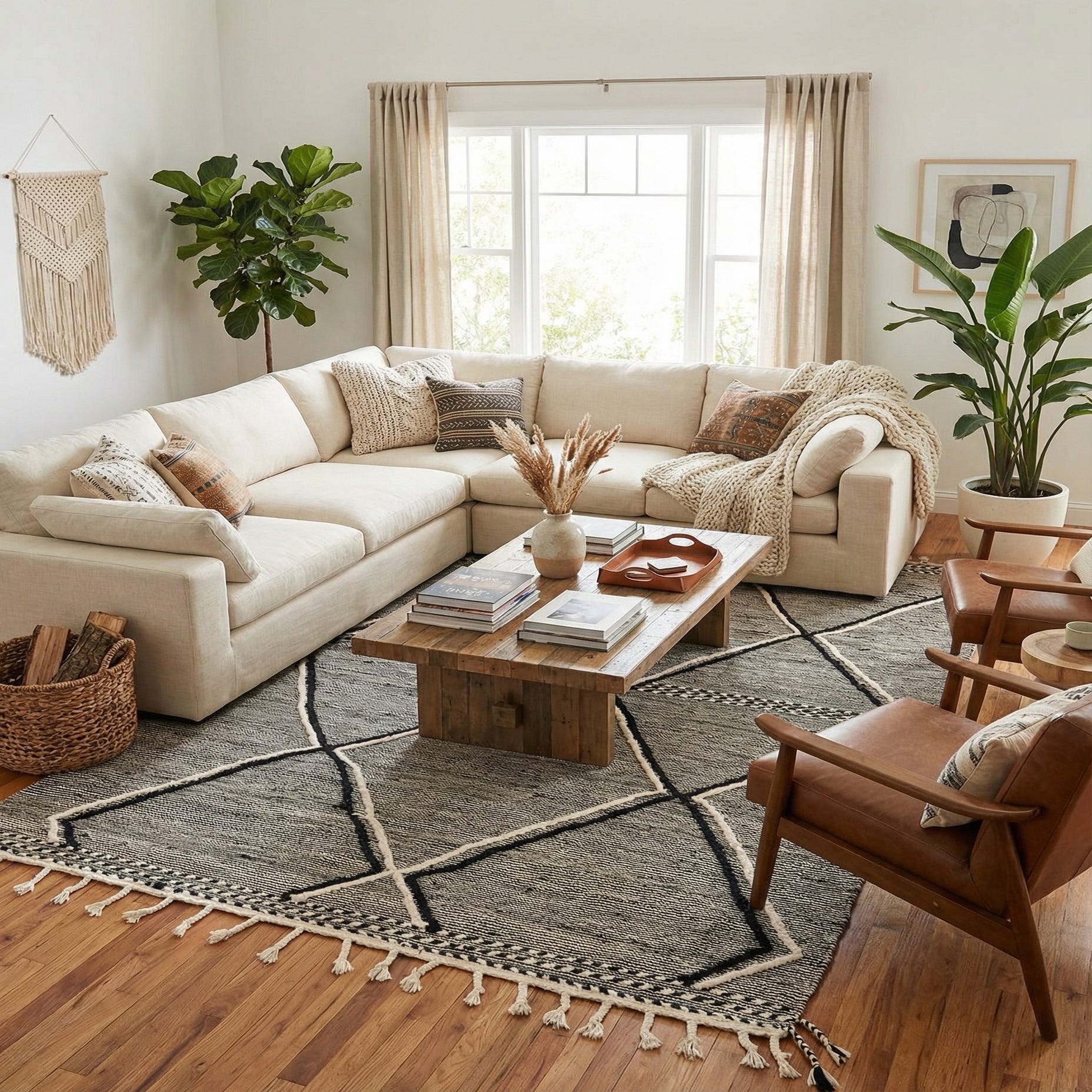 Primary color is Black. Colors in this rug include: Black, Ivory.
