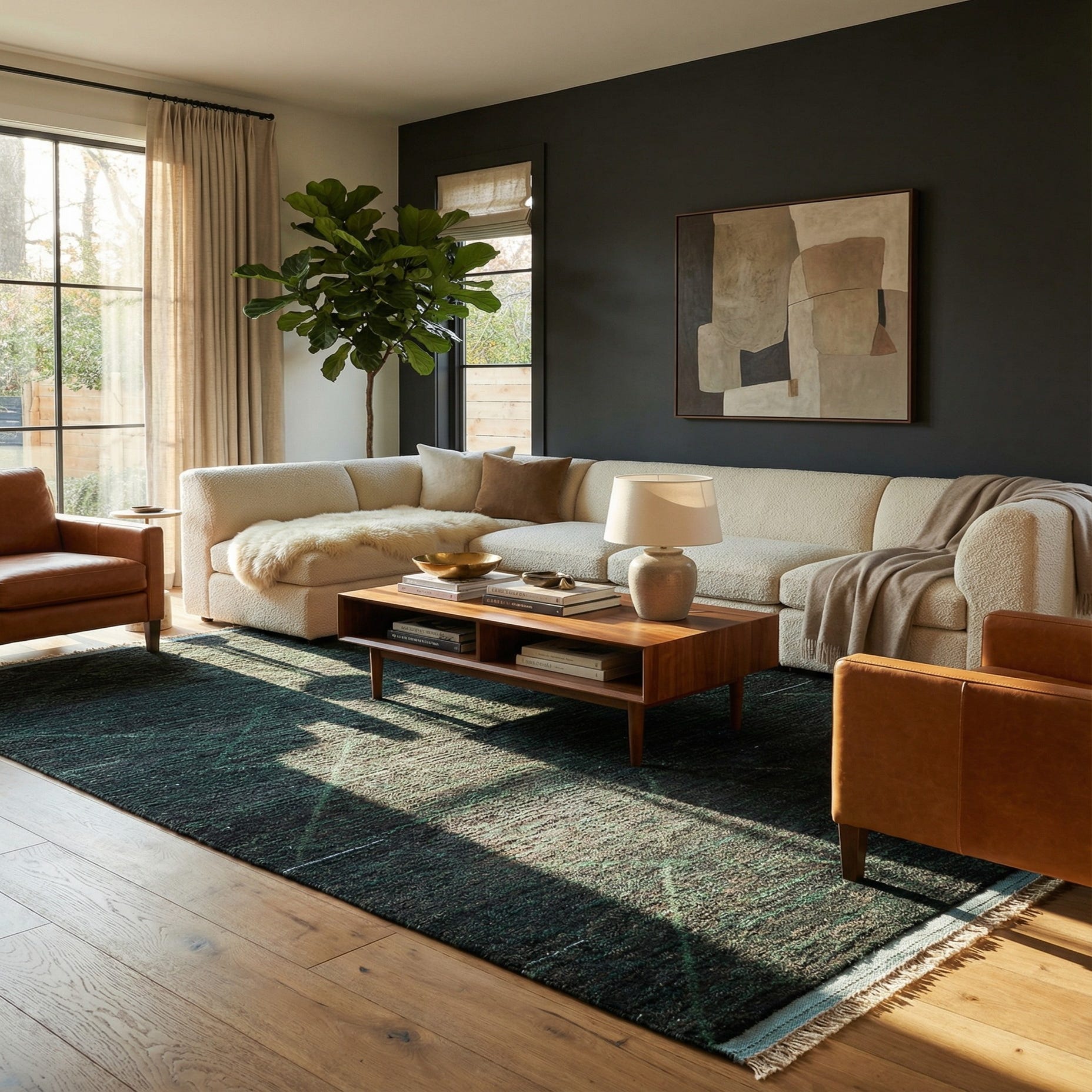Primary color is Black. Colors in this rug include: Black, Hunter Green.