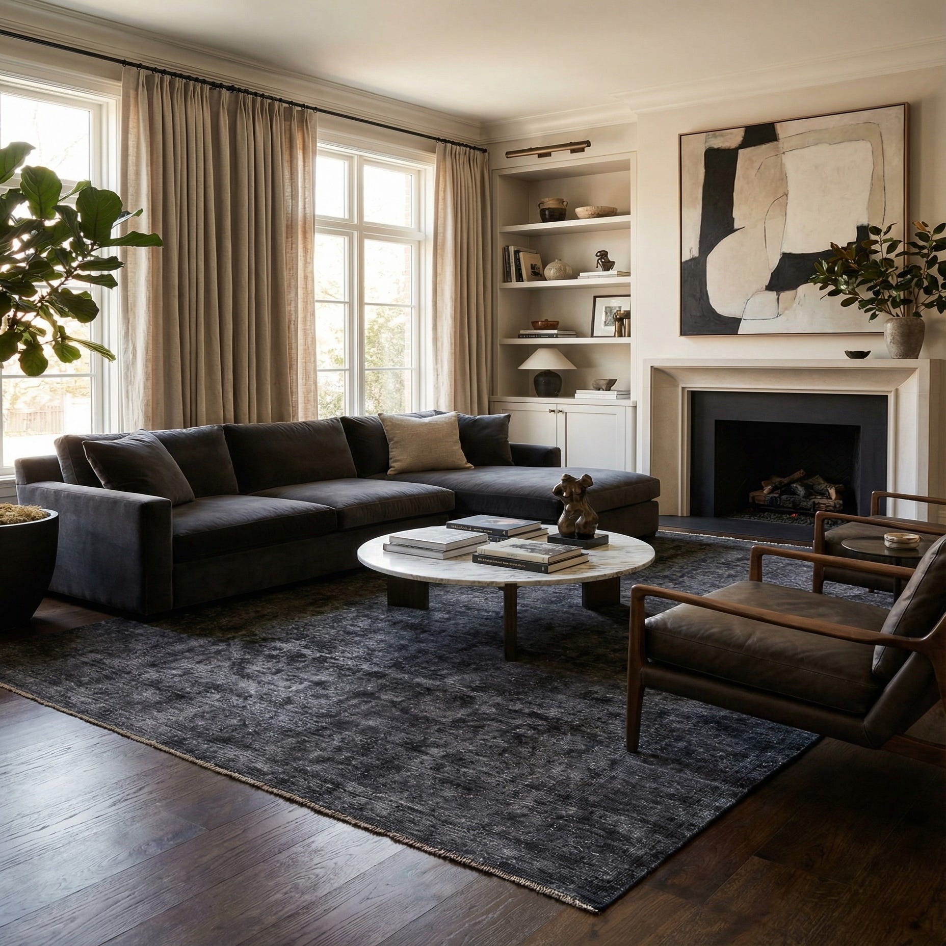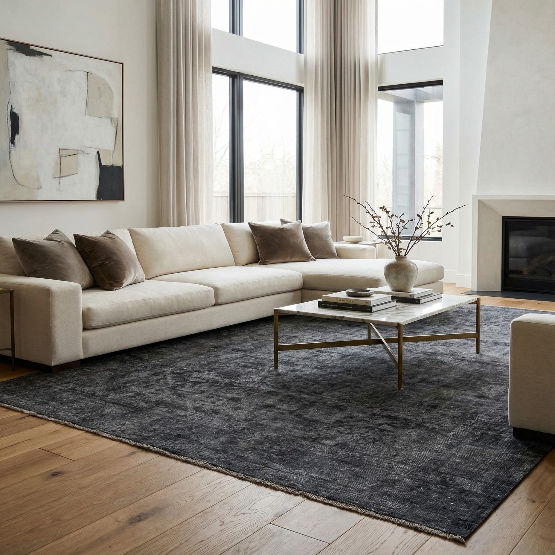 Primary color is Black. Colors in this rug include: Black, Gray.