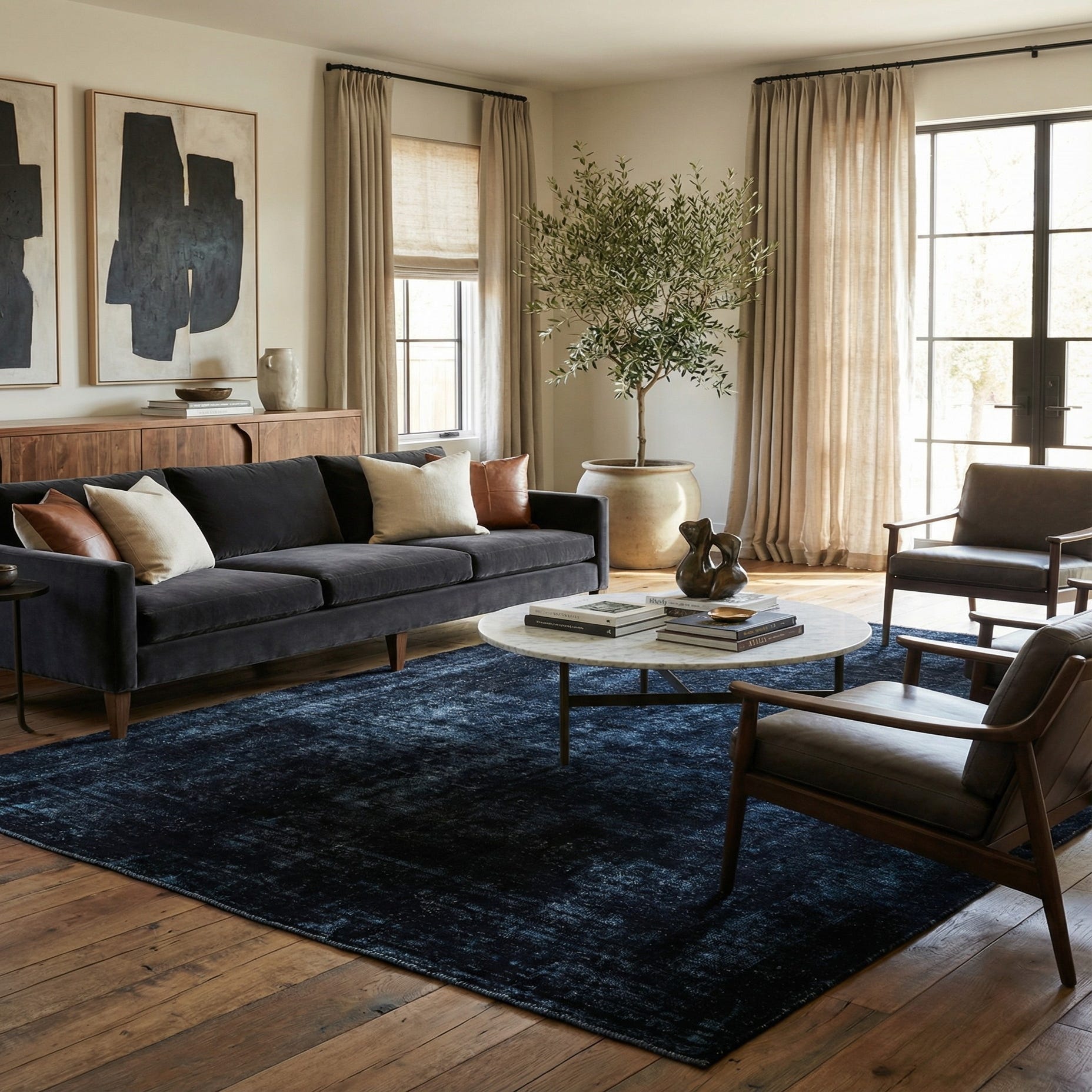 Primary color is Black. Colors in this rug include: Black, Gray.