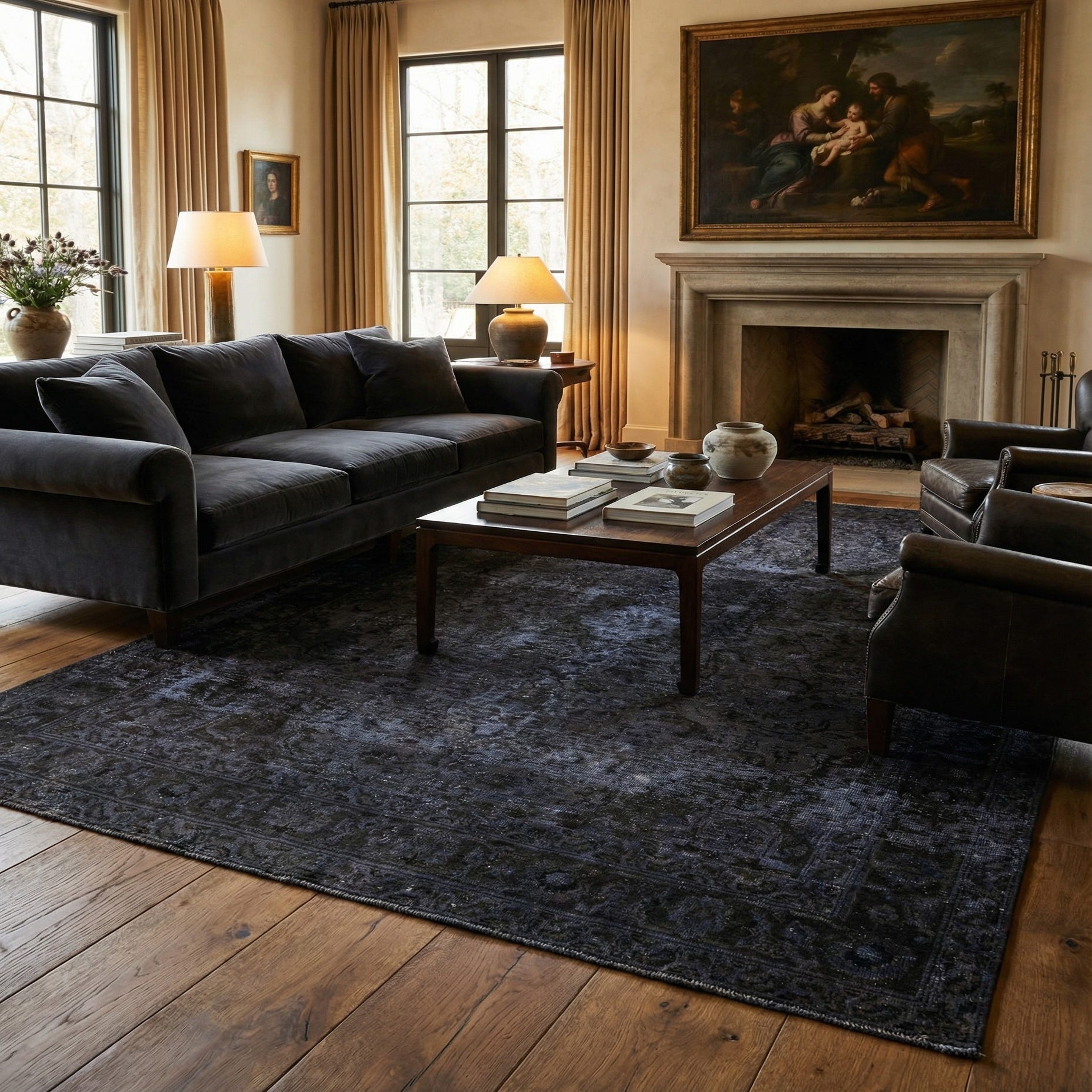 This Persian Ultra Vintage rug is an antique Persian Rug that has been washed, over-dyed, and then shaved down to a low pile. Look at the detail pictures to fully appreciate the uniqueness of this piece.