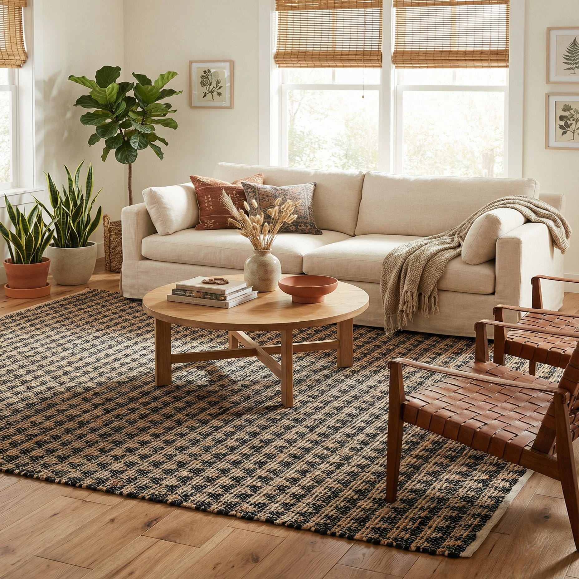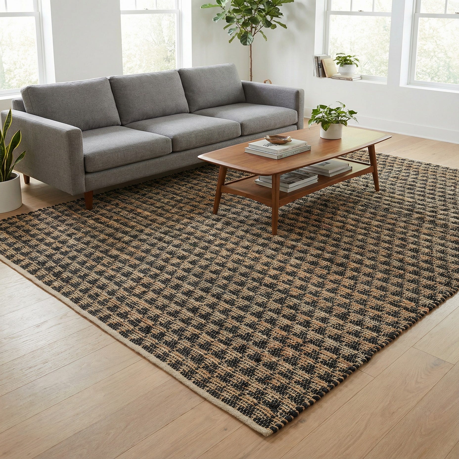 Primary color is Black. Colors in this rug include: Black, Natural.