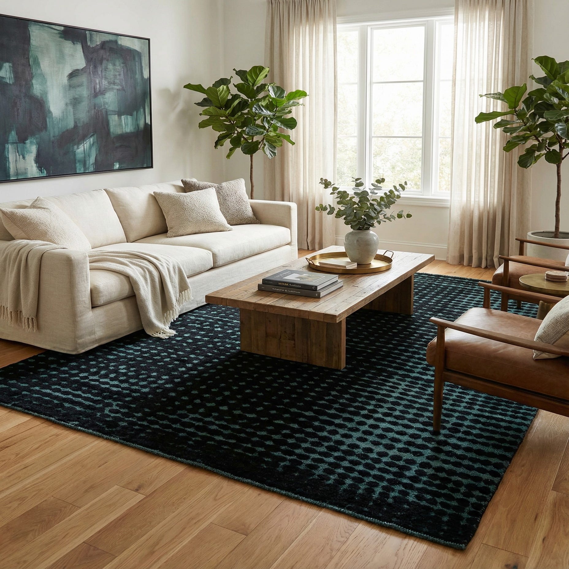 Primary color is Black. Colors in this rug include: Black, Hunter Green.