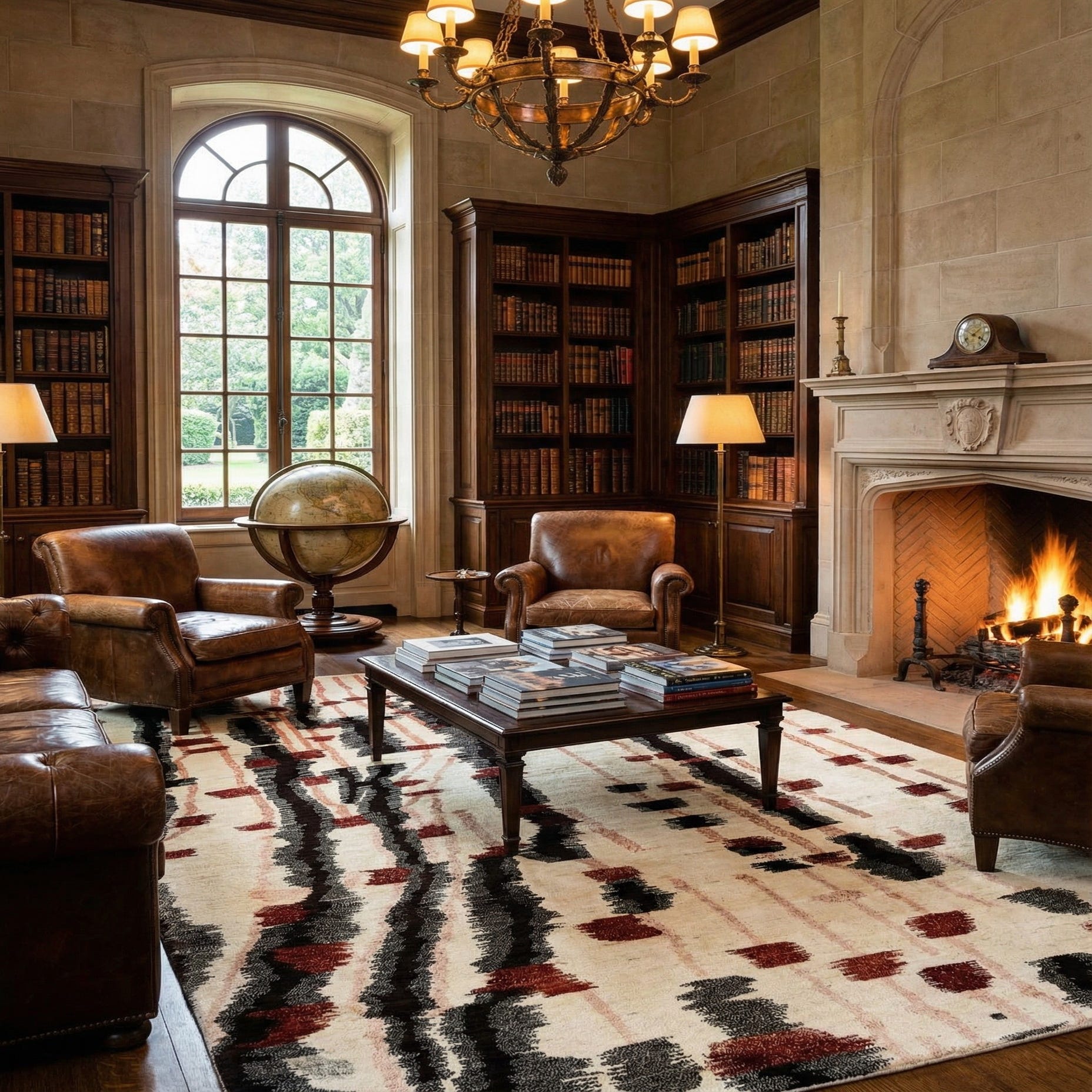 Primary color is Black. Colors in this rug include: Black, Language: en