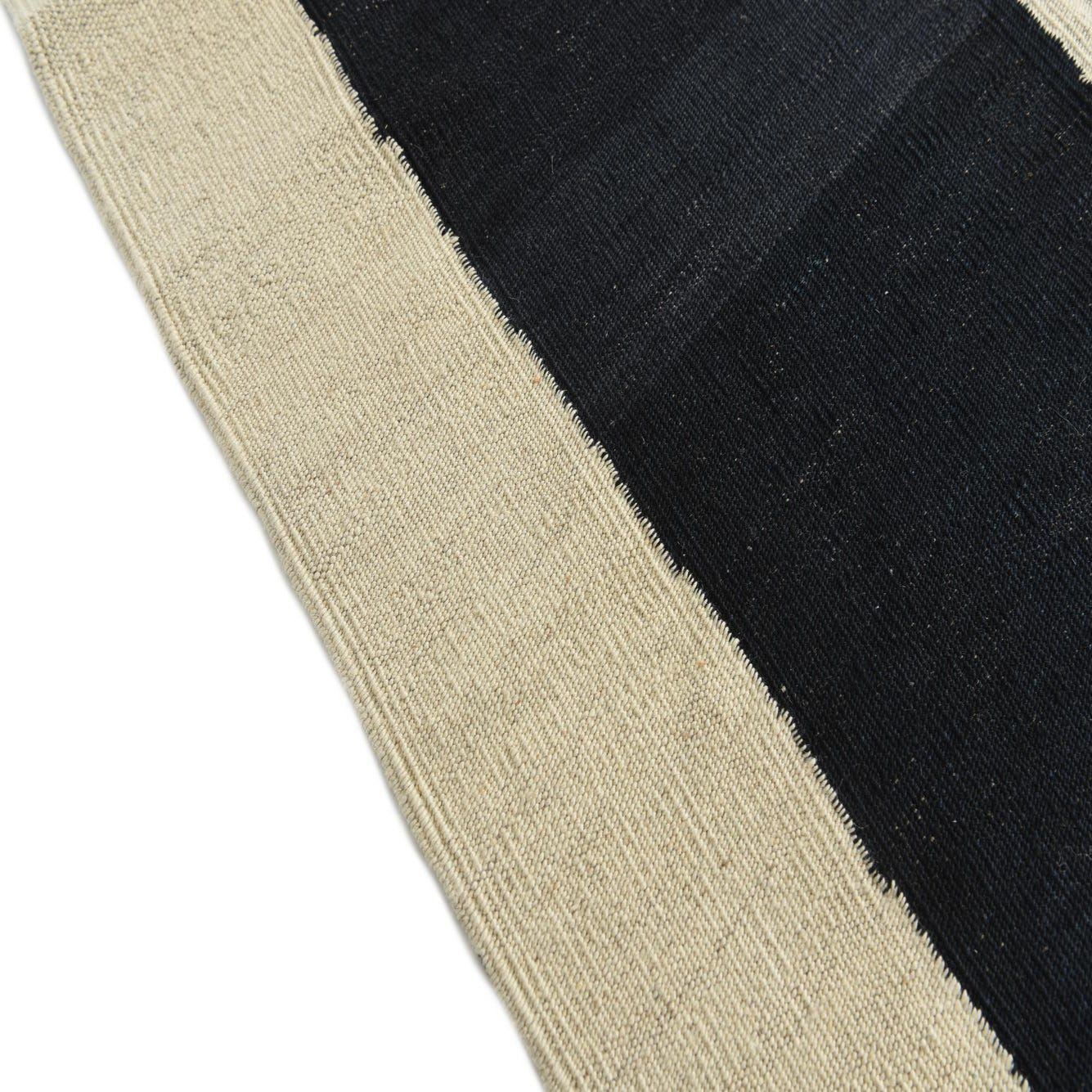 Primary color is Black. Colors in this rug include: Black, Cream.
