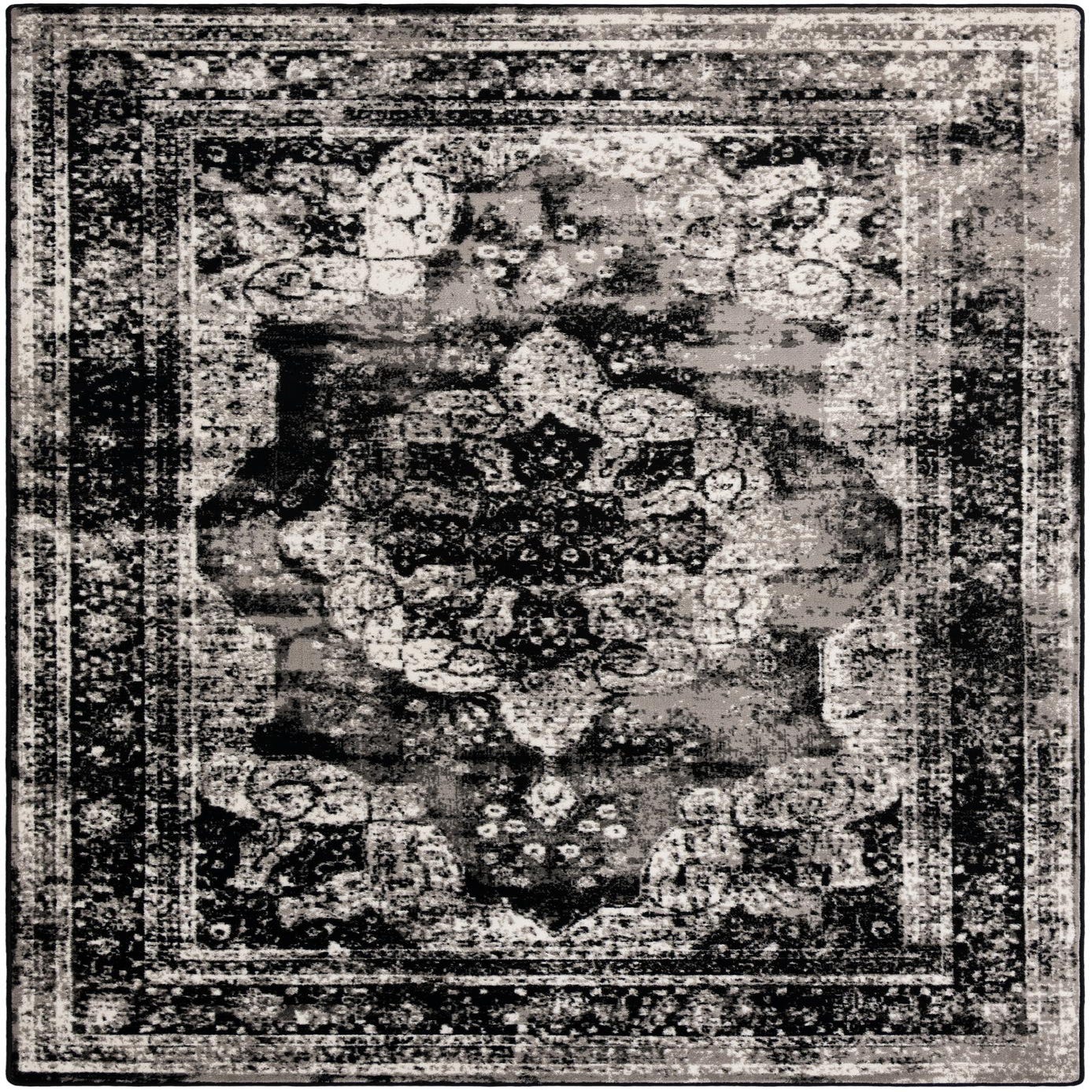 Primary color is Black. Colors in this rug include: Black, Gray, Ivory.