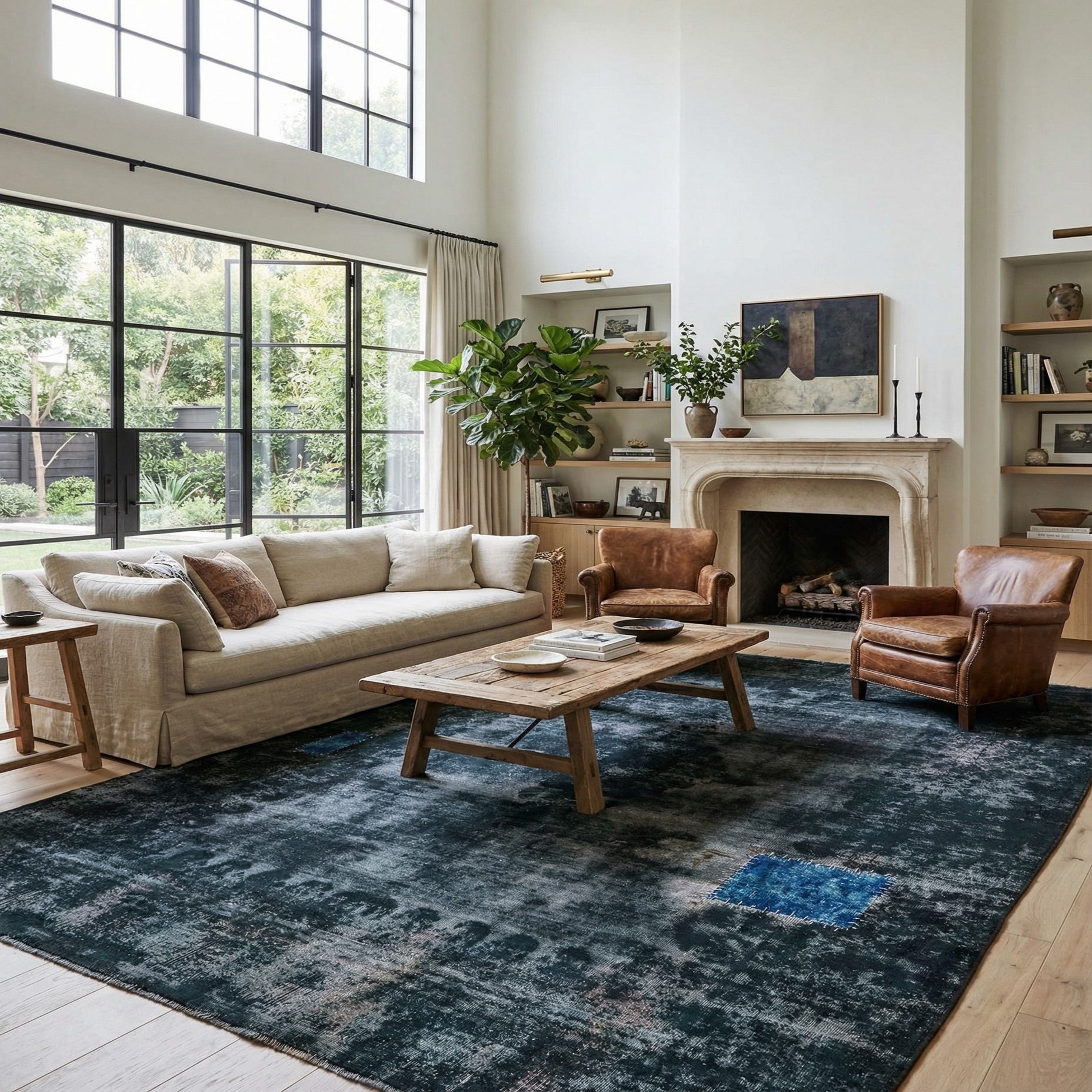 This Persian Ultra Vintage rug is an antique Persian Rug that has been washed, over-dyed, and then shaved down to a low pile. Look at the detail pictures to fully appreciate the uniqueness of this piece.