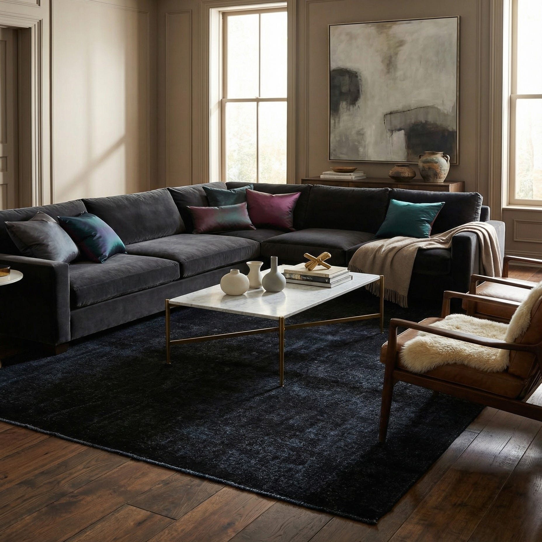 Primary color is Black. Colors in this rug include: Black, Gray.