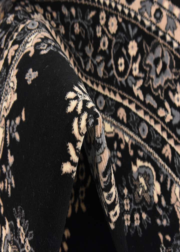Primary color is Black. Colors in this rug include: Black, Beige, Light Blue.