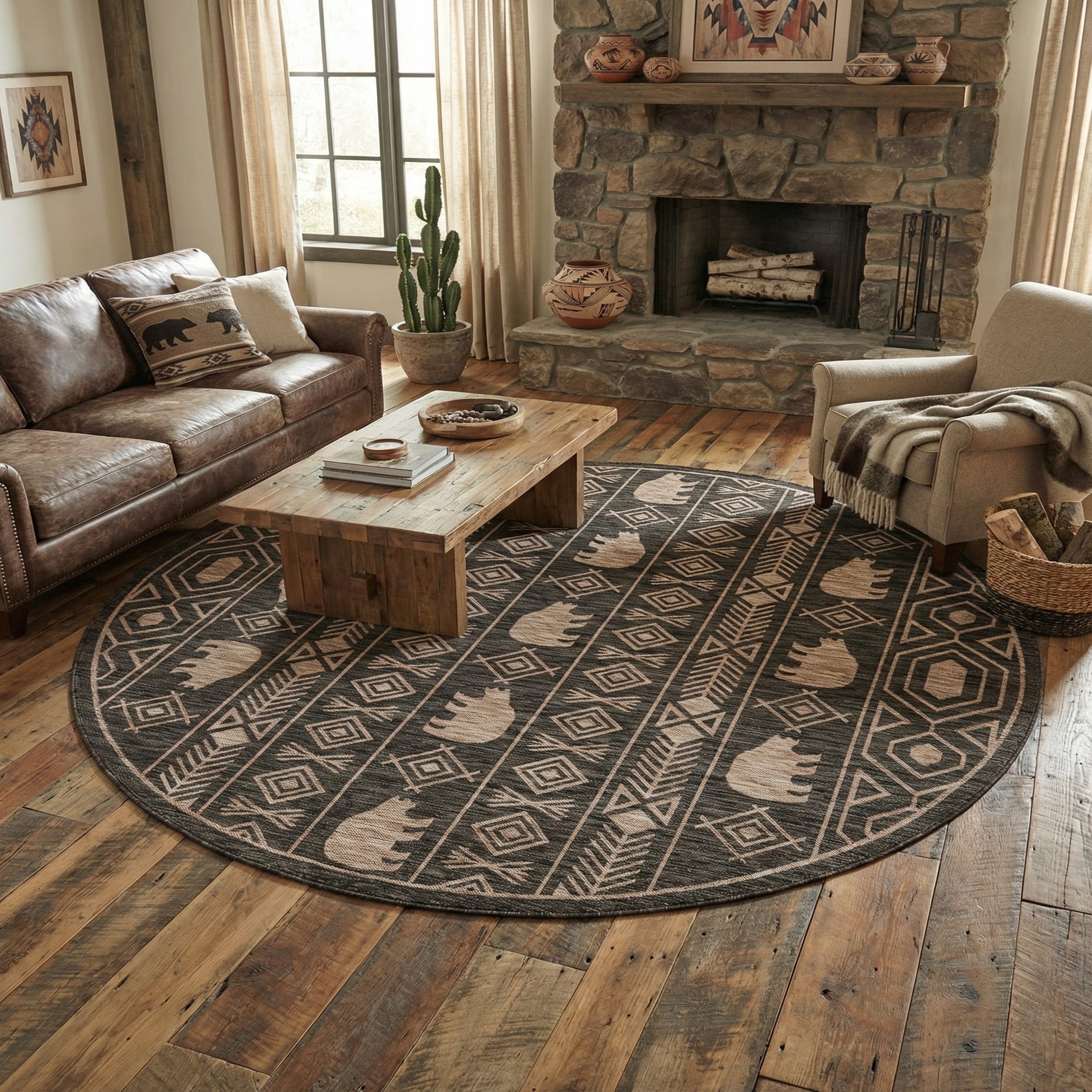 7' 10 x 7' 10 Washable Southwestern Indoor / Outdoor Round Rug