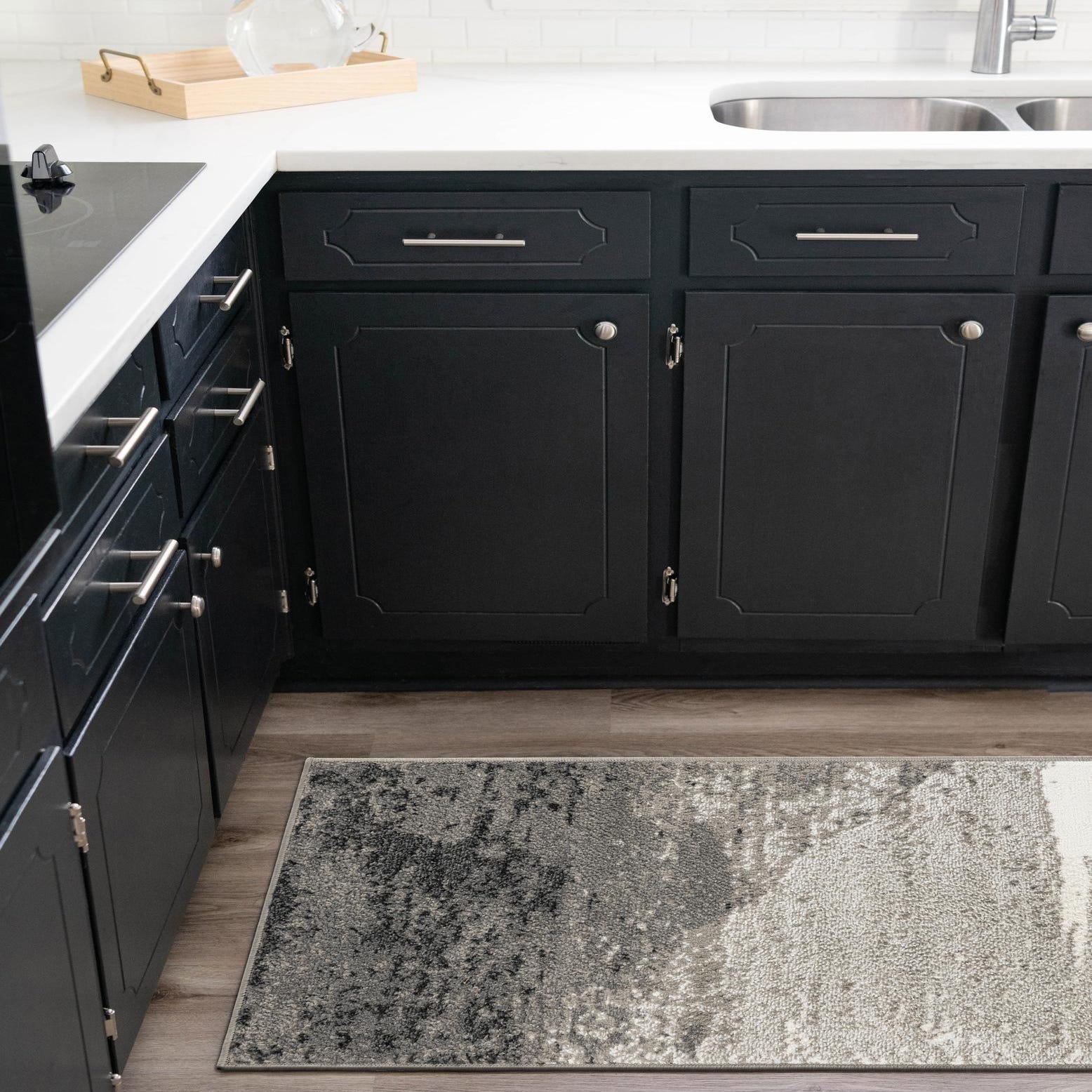 Primary color is Black. Colors in this rug include: Black, Ivory, Gray.