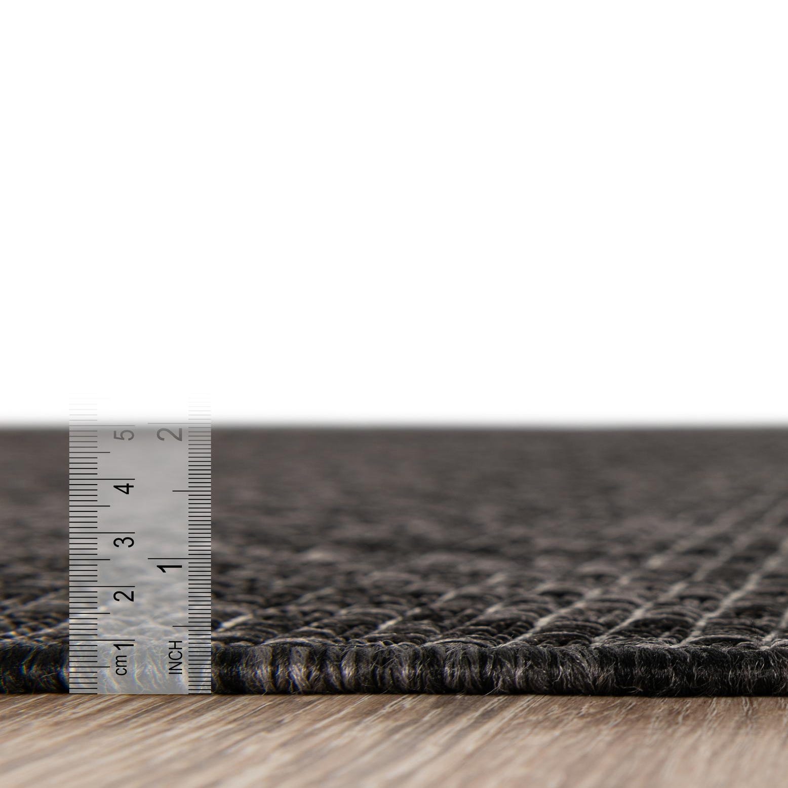 Primary color is Black. Colors in this rug include: Black, Ivory.