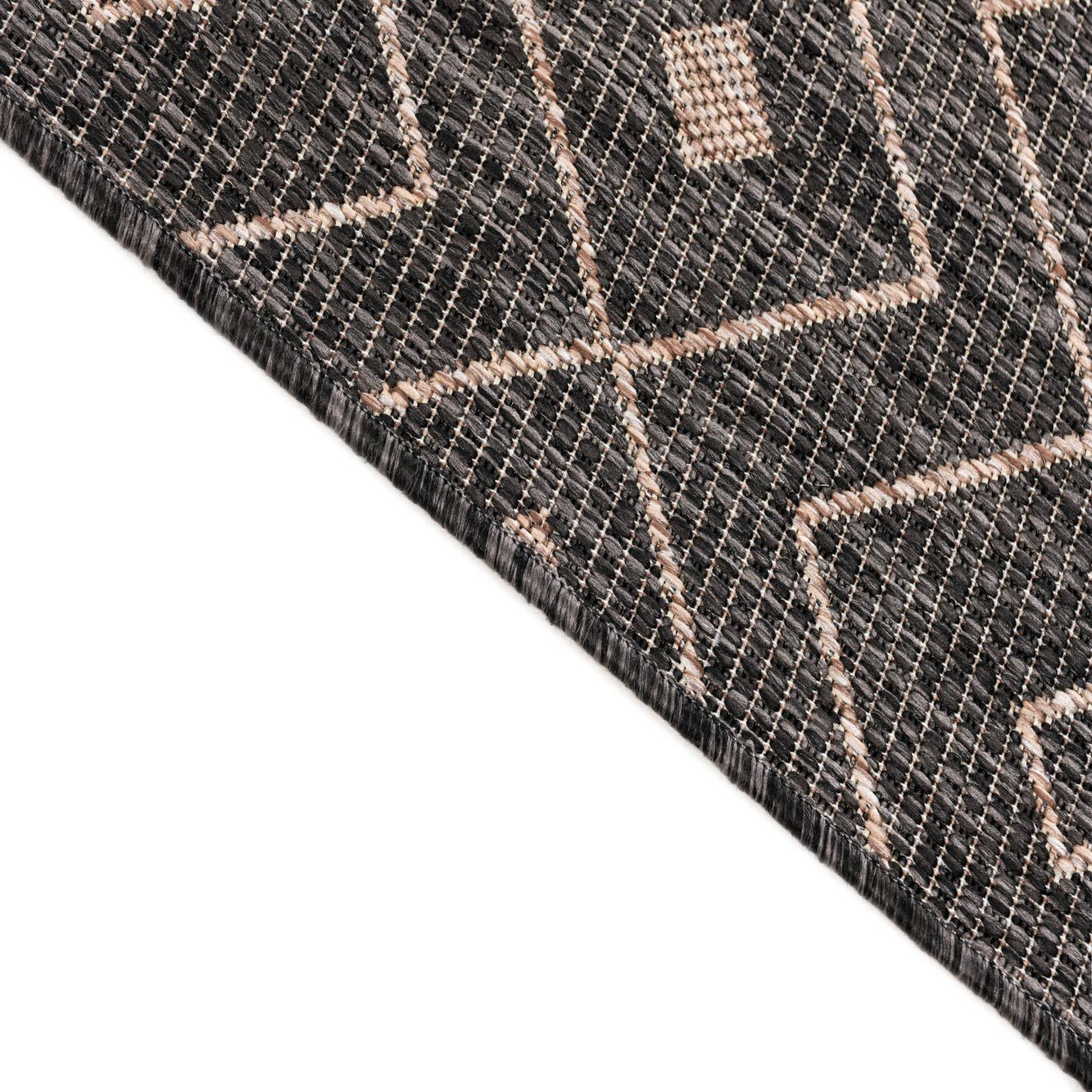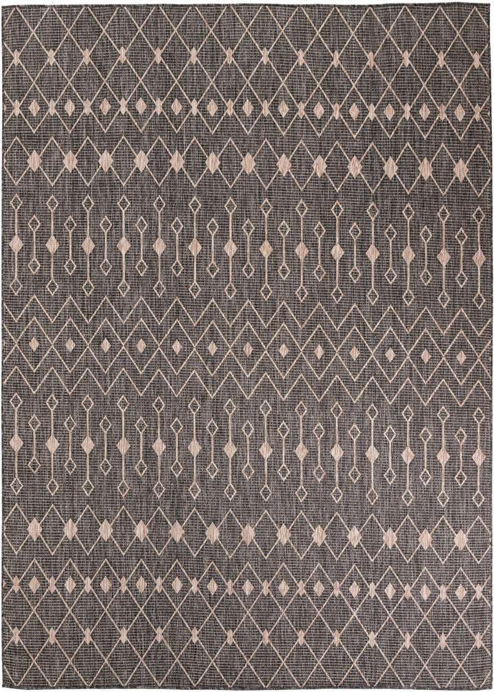 Primary color is Black. Colors in this rug include: Black, Brown, Beige.