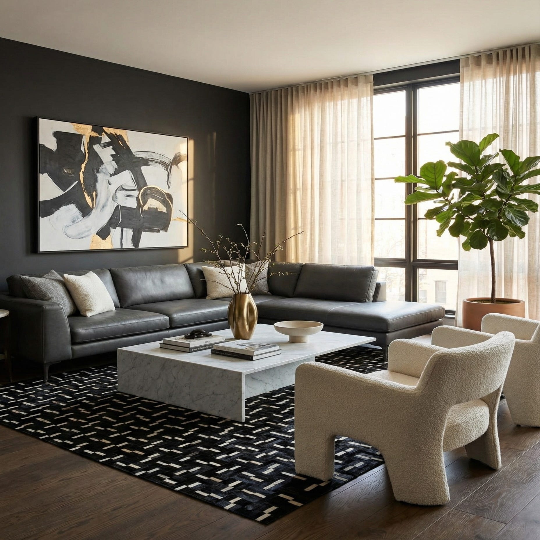 Detail image of 8' x 9' 10 Cowhide Leather Rug