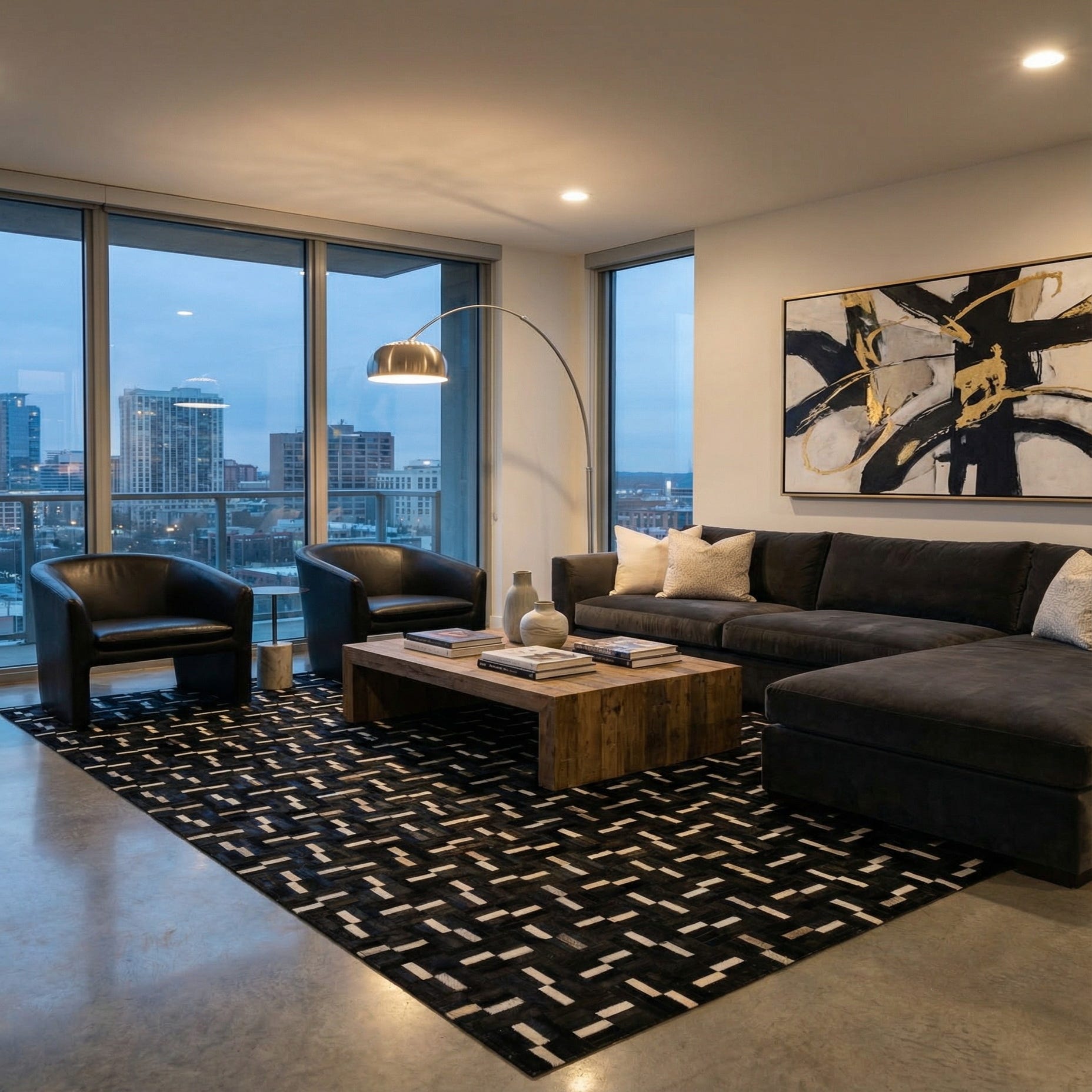 Detail image of 8' 2 x 9' 10 Cowhide Leather Rug