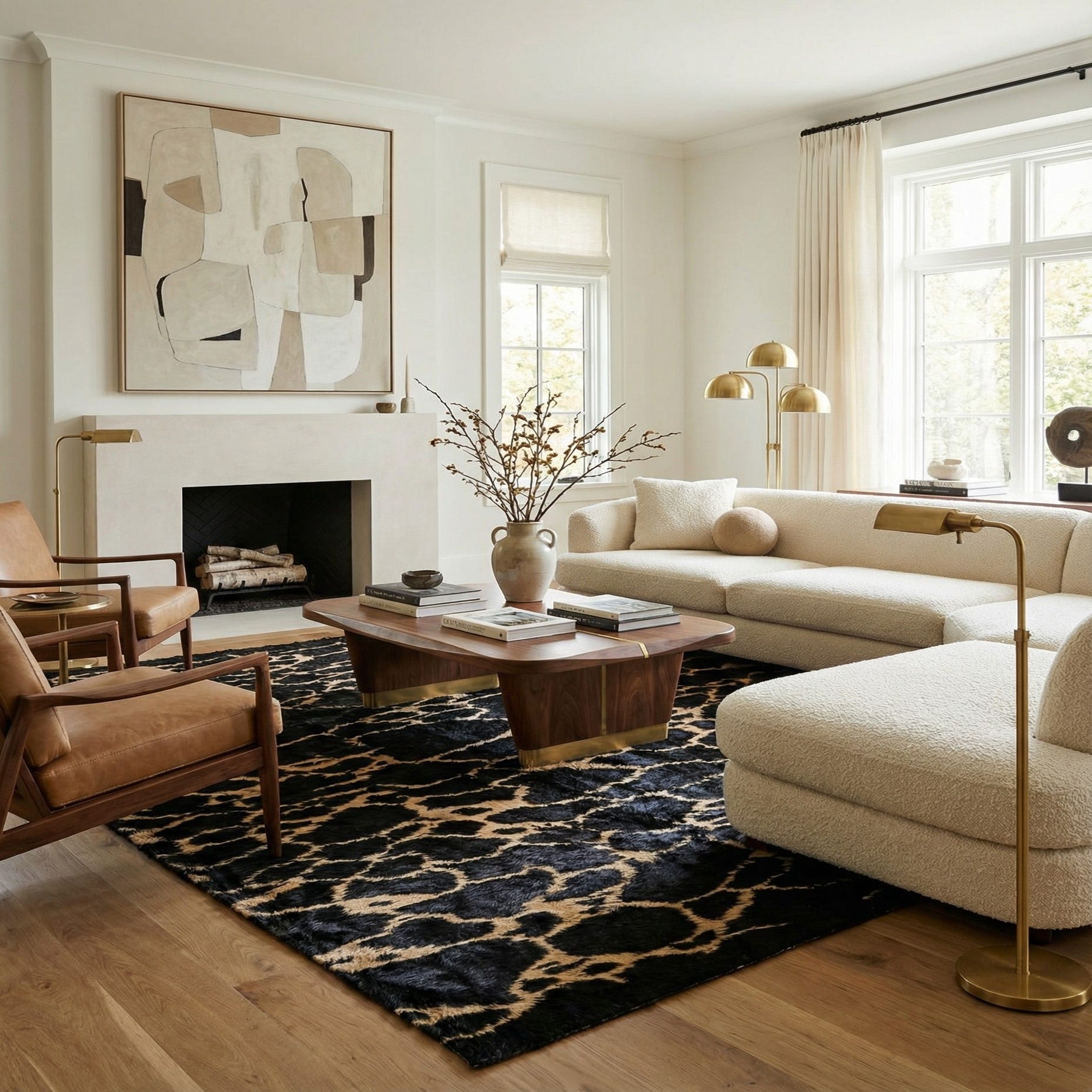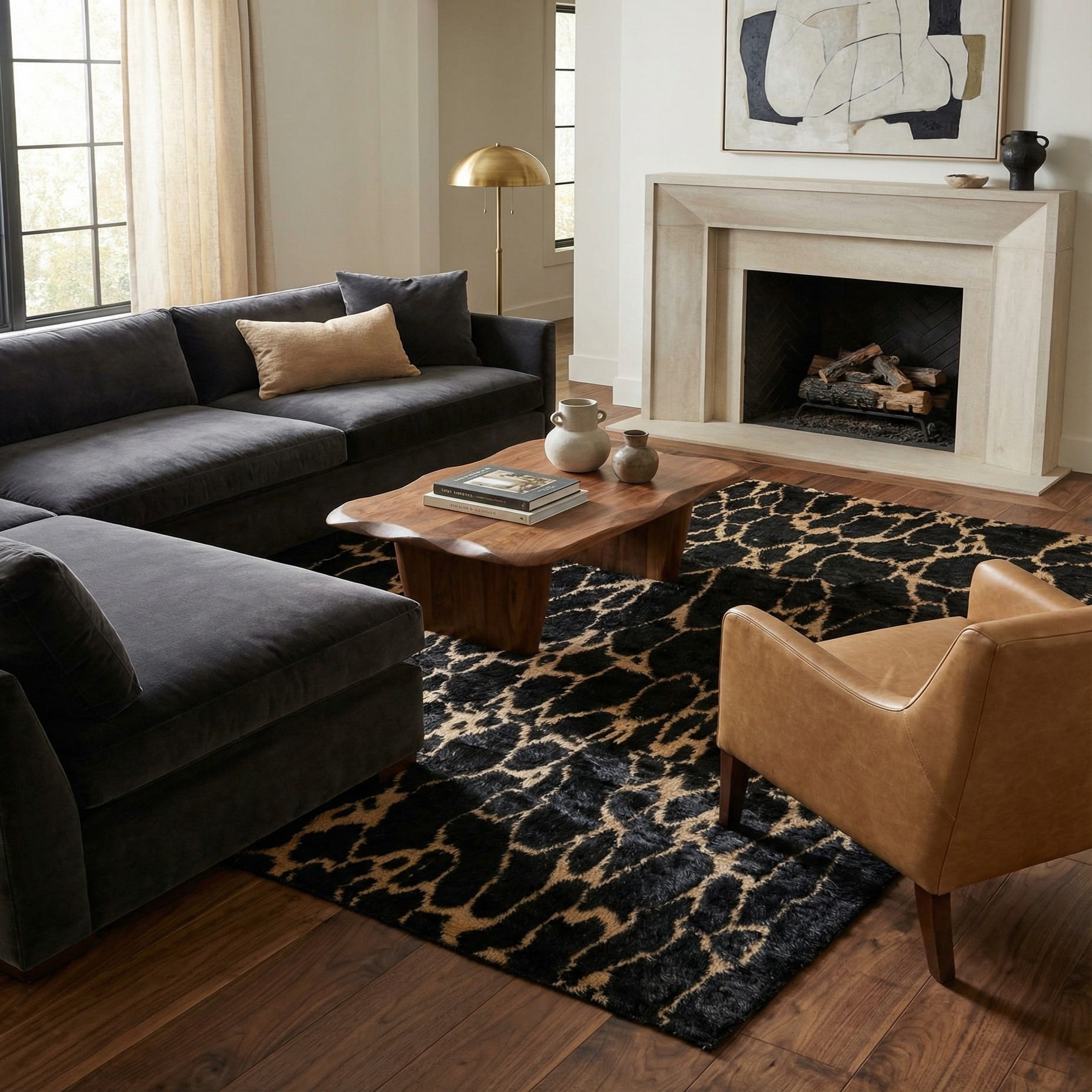 Primary color is Black. Colors in this rug include: Black, Cream.