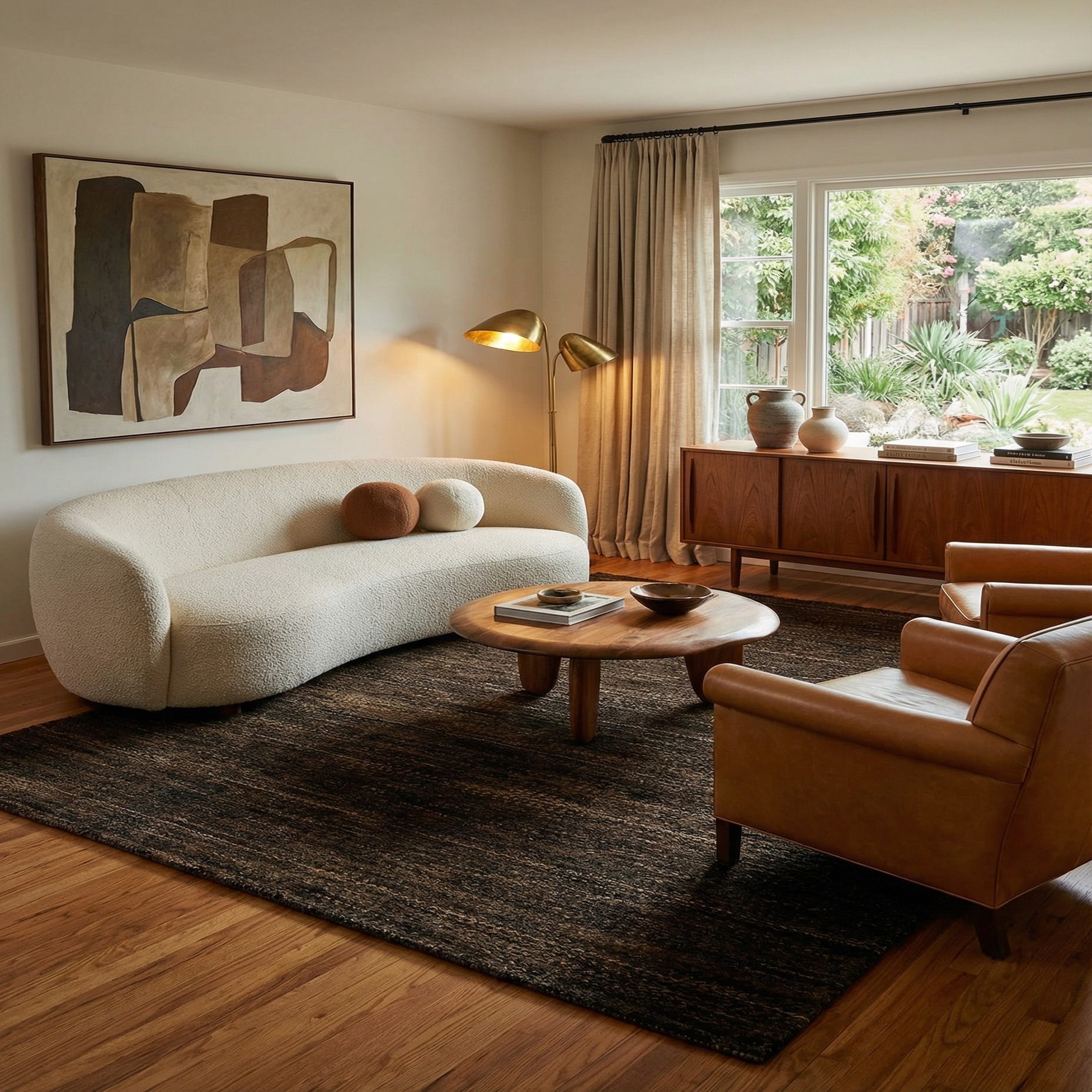 Primary color is Black. Colors in this rug include: Black, Black, Brown, Beige.