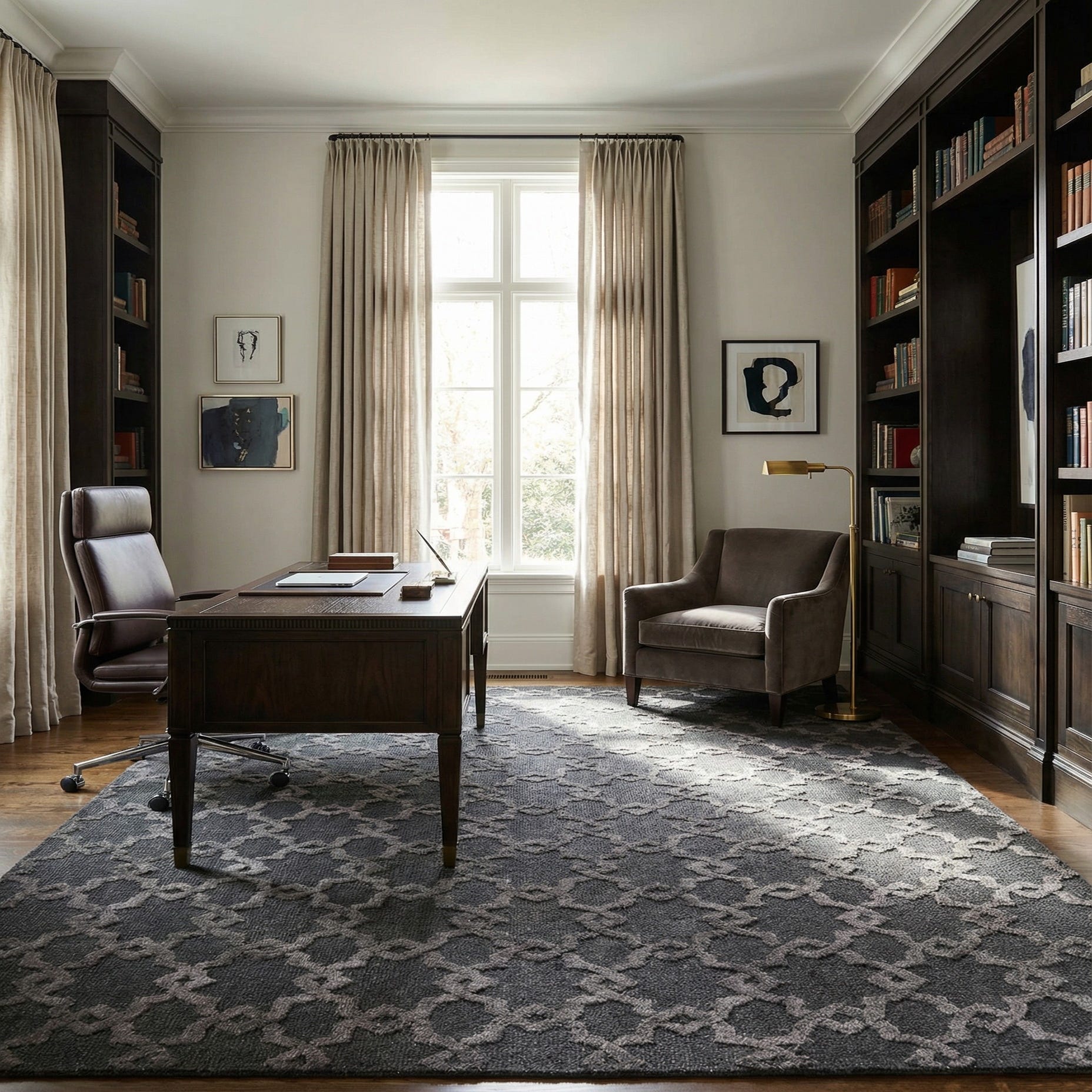 Primary color is Black. Colors in this rug include: Black, Gray.