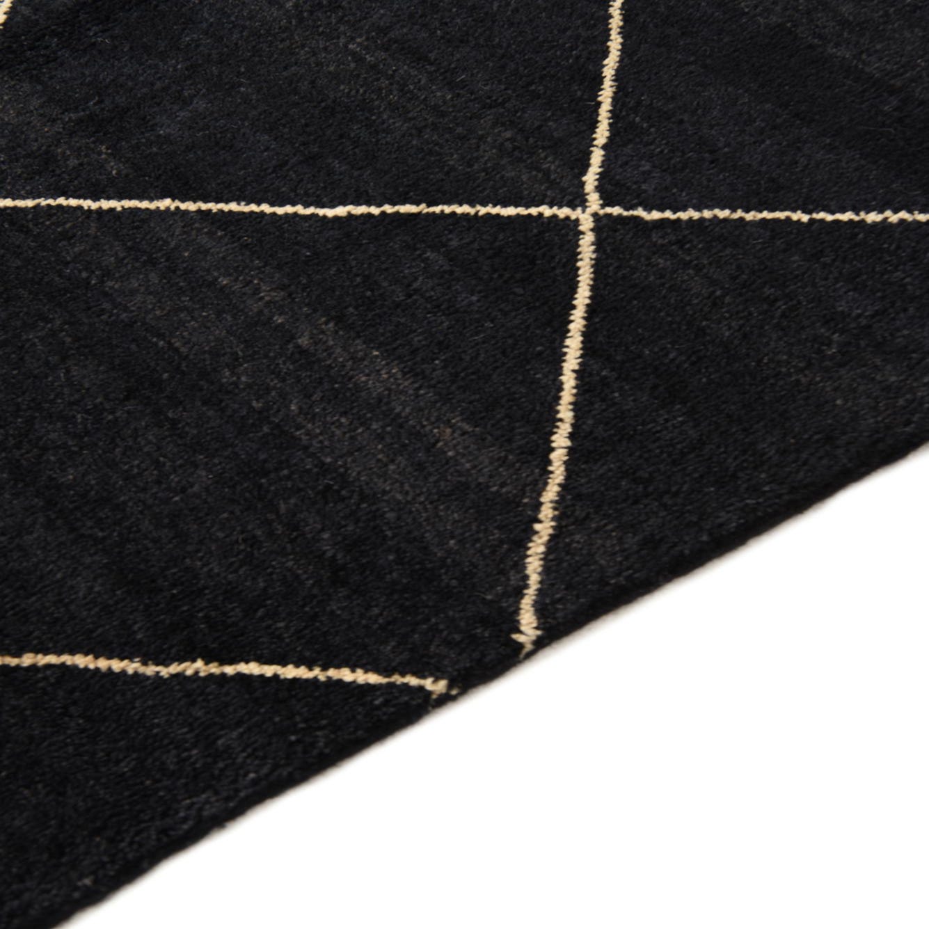 Primary color is Black. Colors in this rug include: Black, Beige.