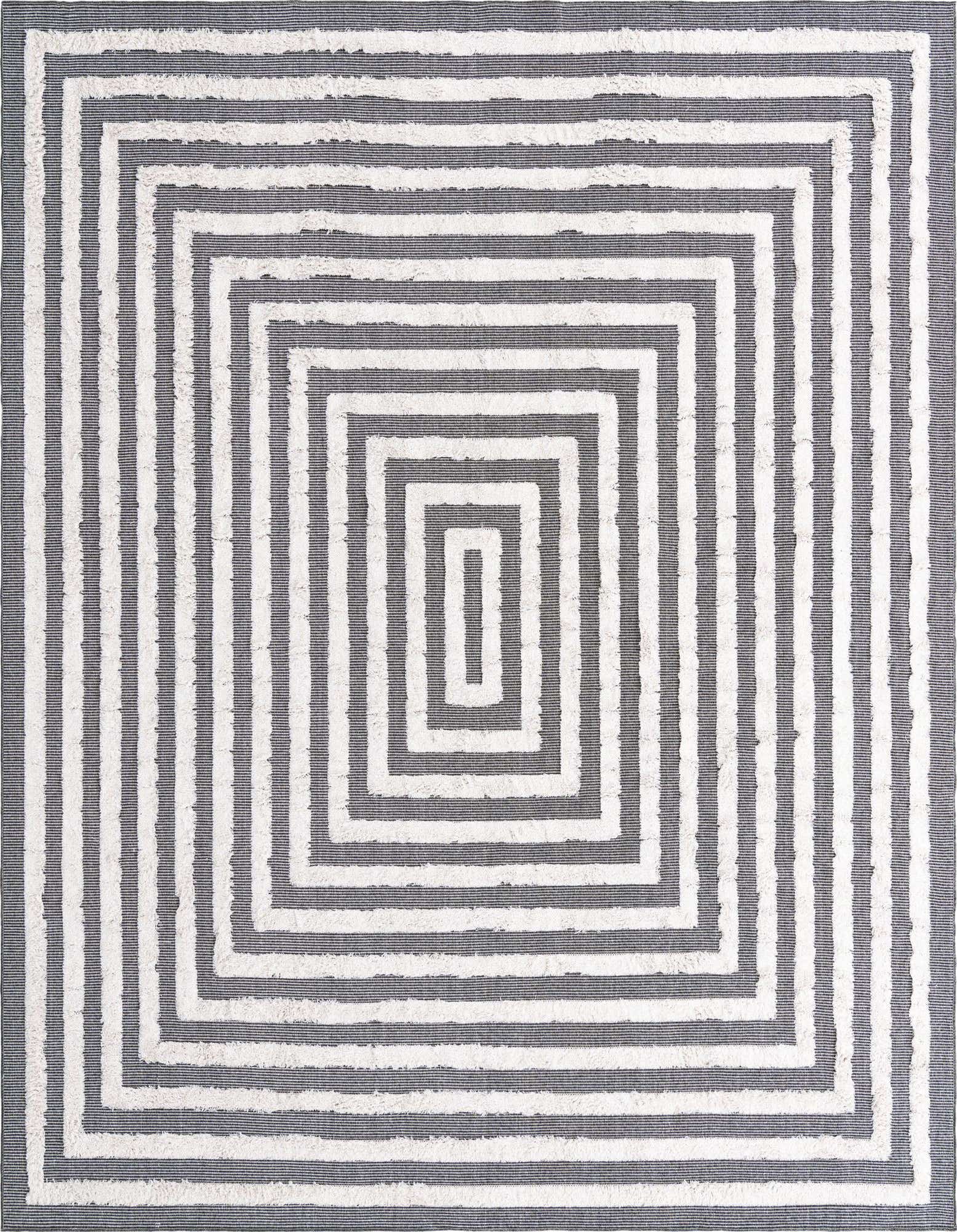 Primary color is Black. Colors in this rug include: Black, Ivory.