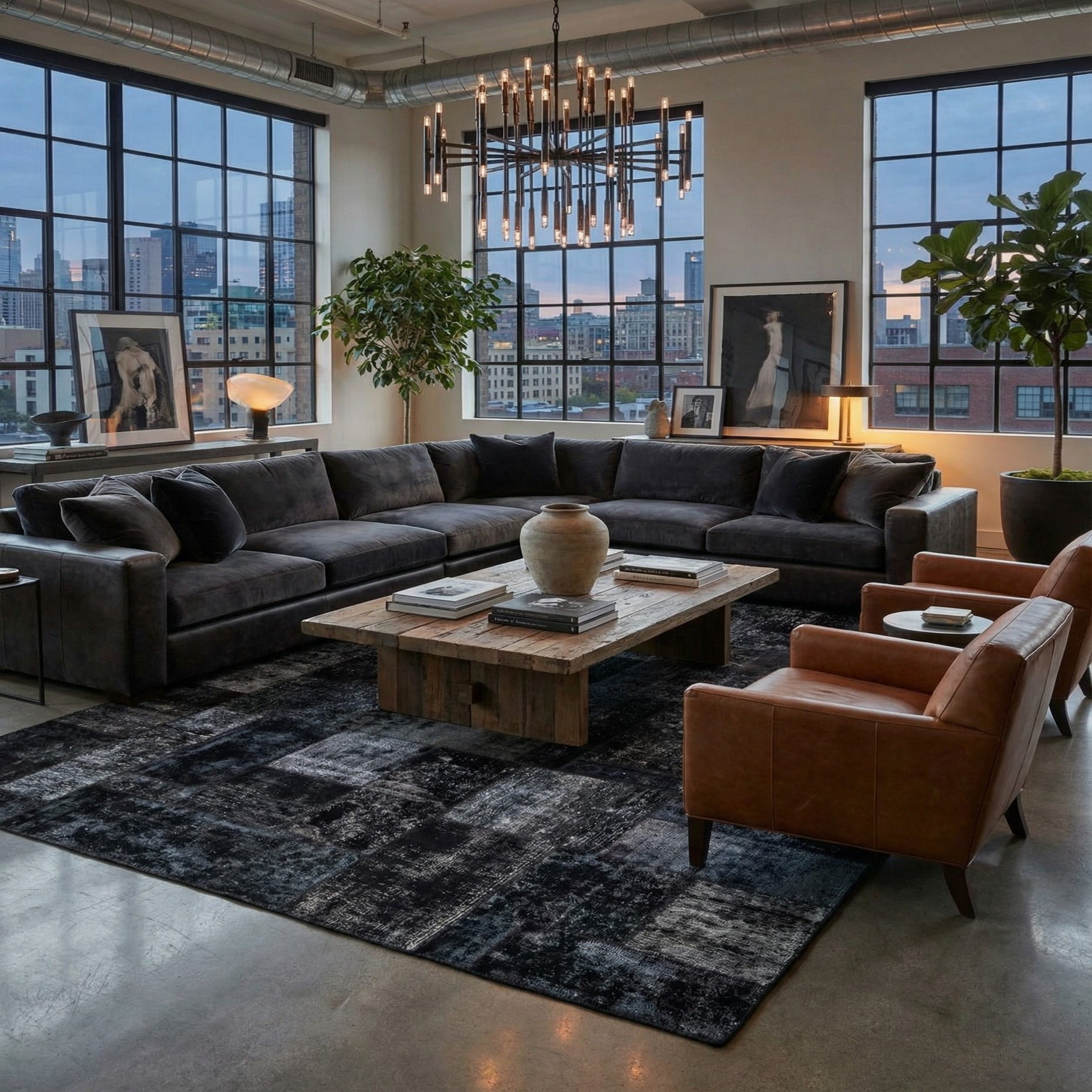 Primary color is Black. Colors in this rug include: Black, Gray, Ivory.