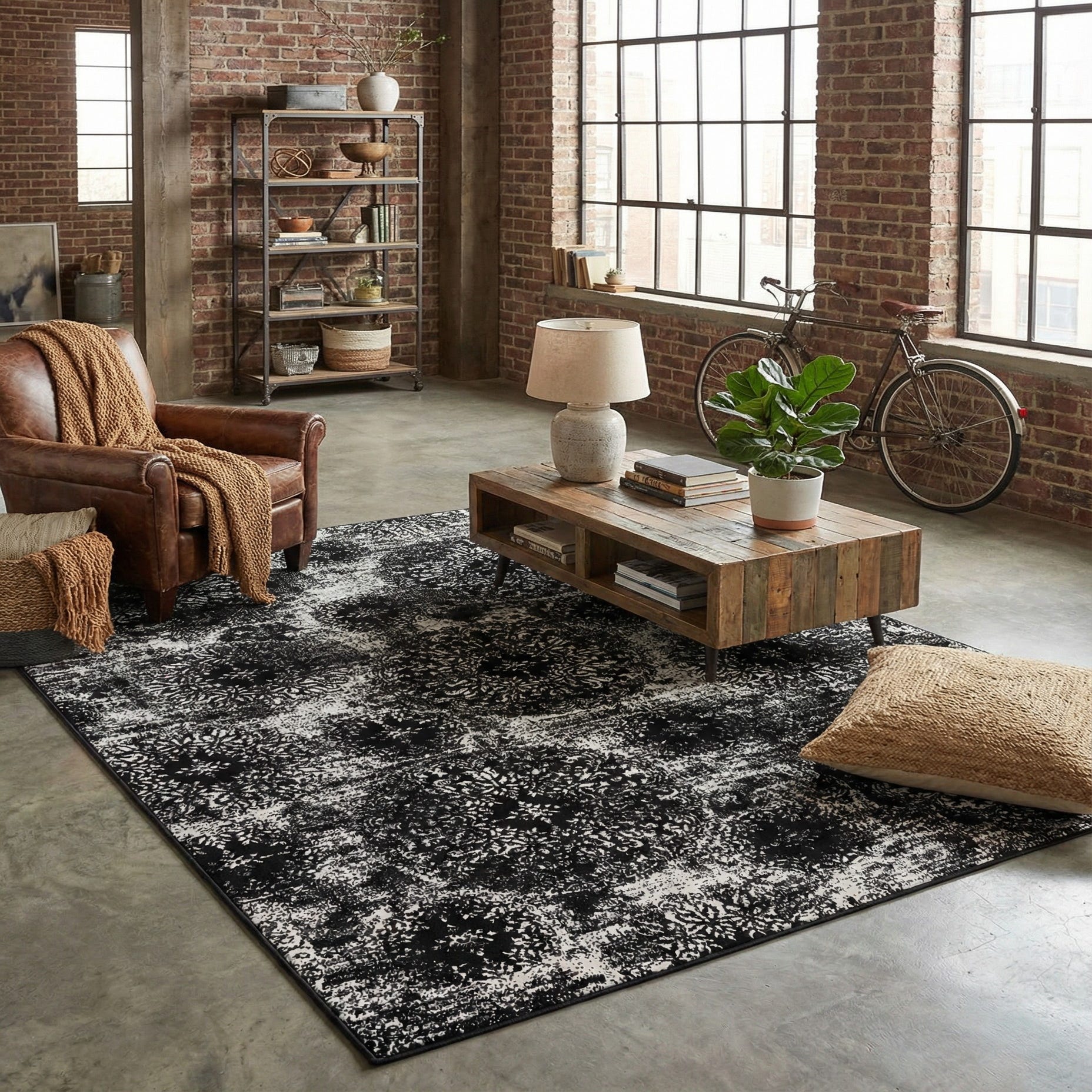 Primary color is Black. Colors in this rug include: Black, Ivory.