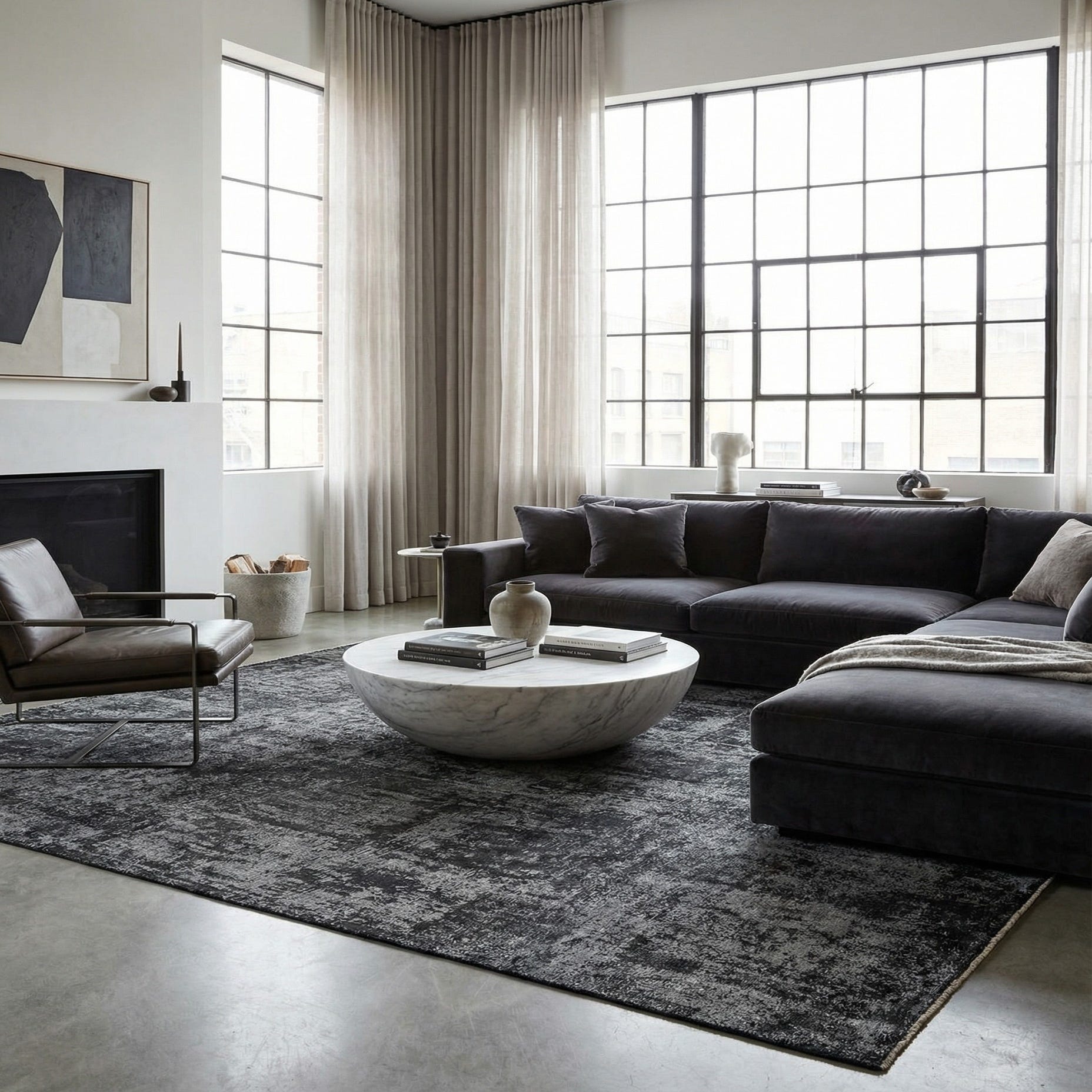 Primary color is Black. Colors in this rug include: Black, Gray.