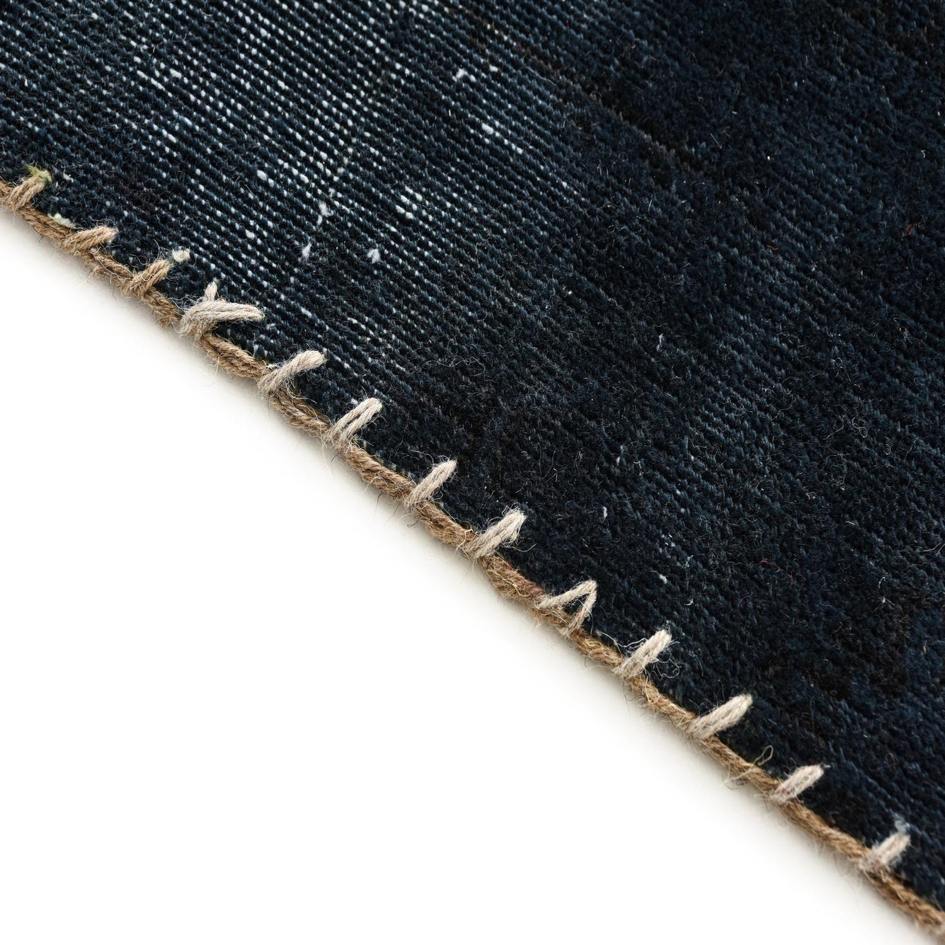 Primary color is Black. Colors in this rug include: Black, Navy Blue, Ivory.