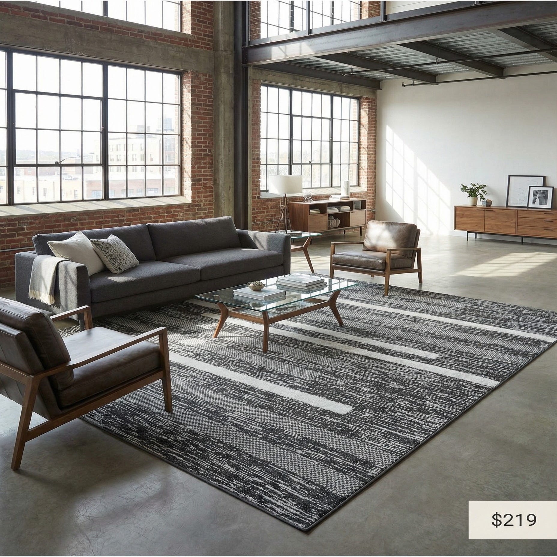 Primary color is Black. Colors in this rug include: Black, Ivory, Gray.