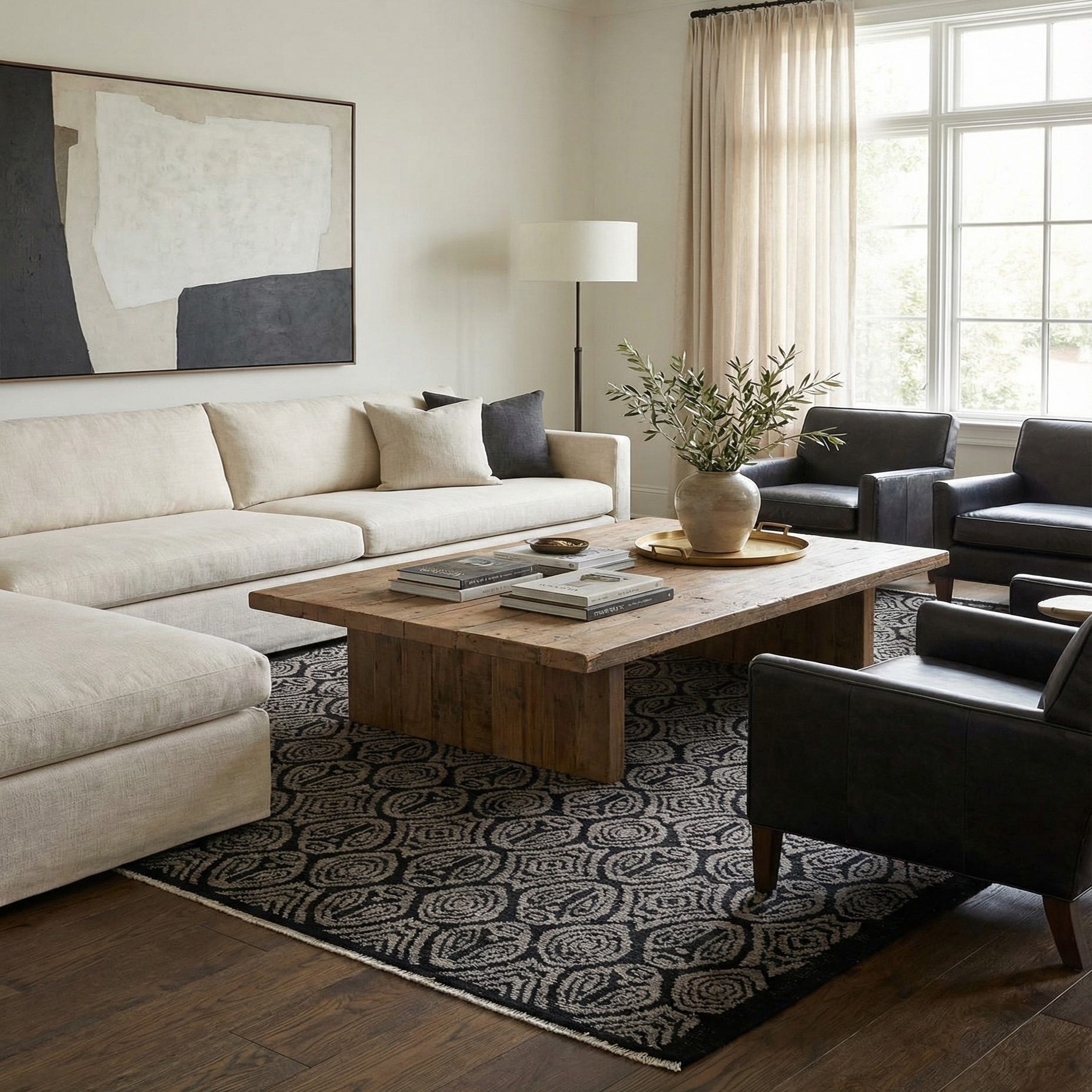 Primary color is Black. Colors in this rug include: Black, Gray.