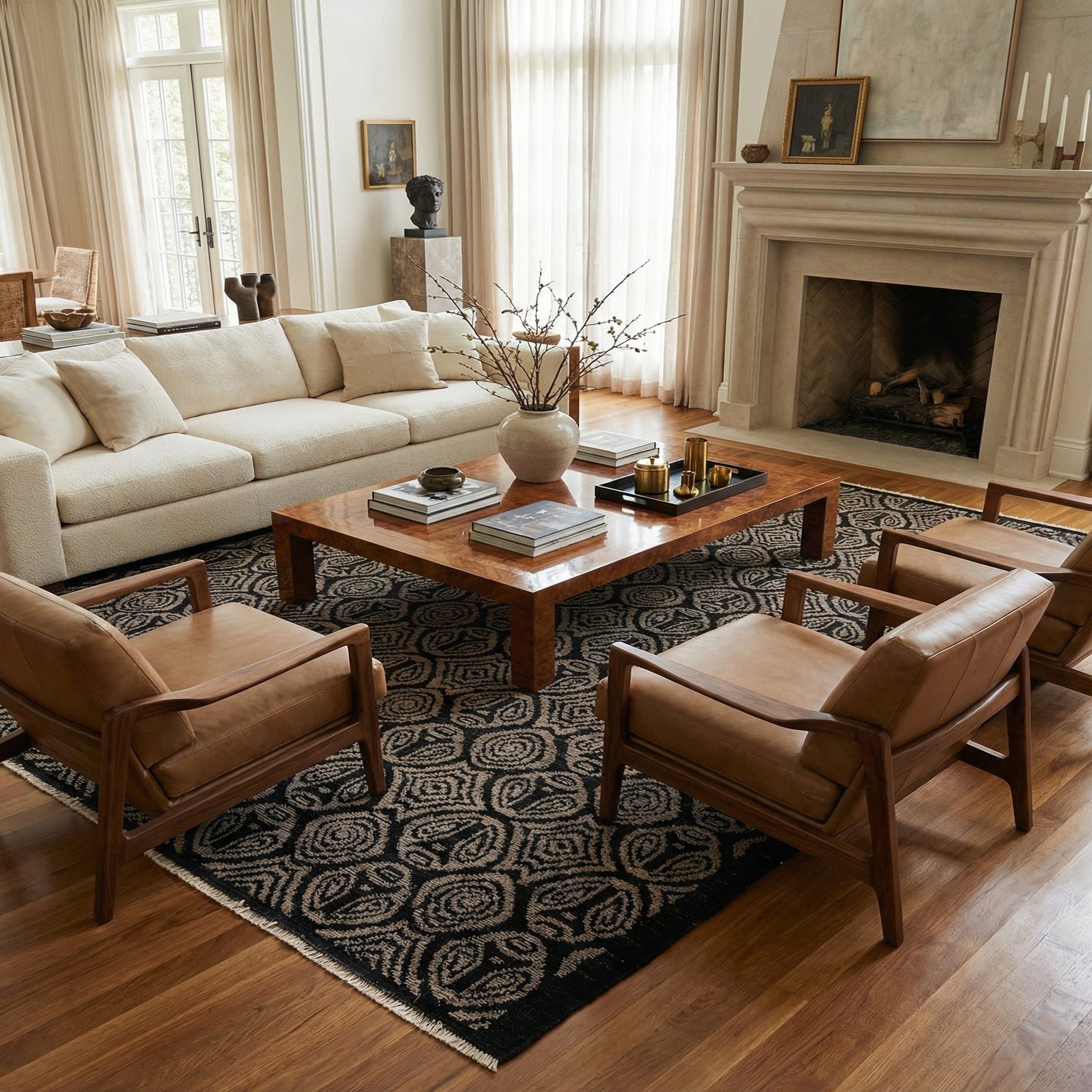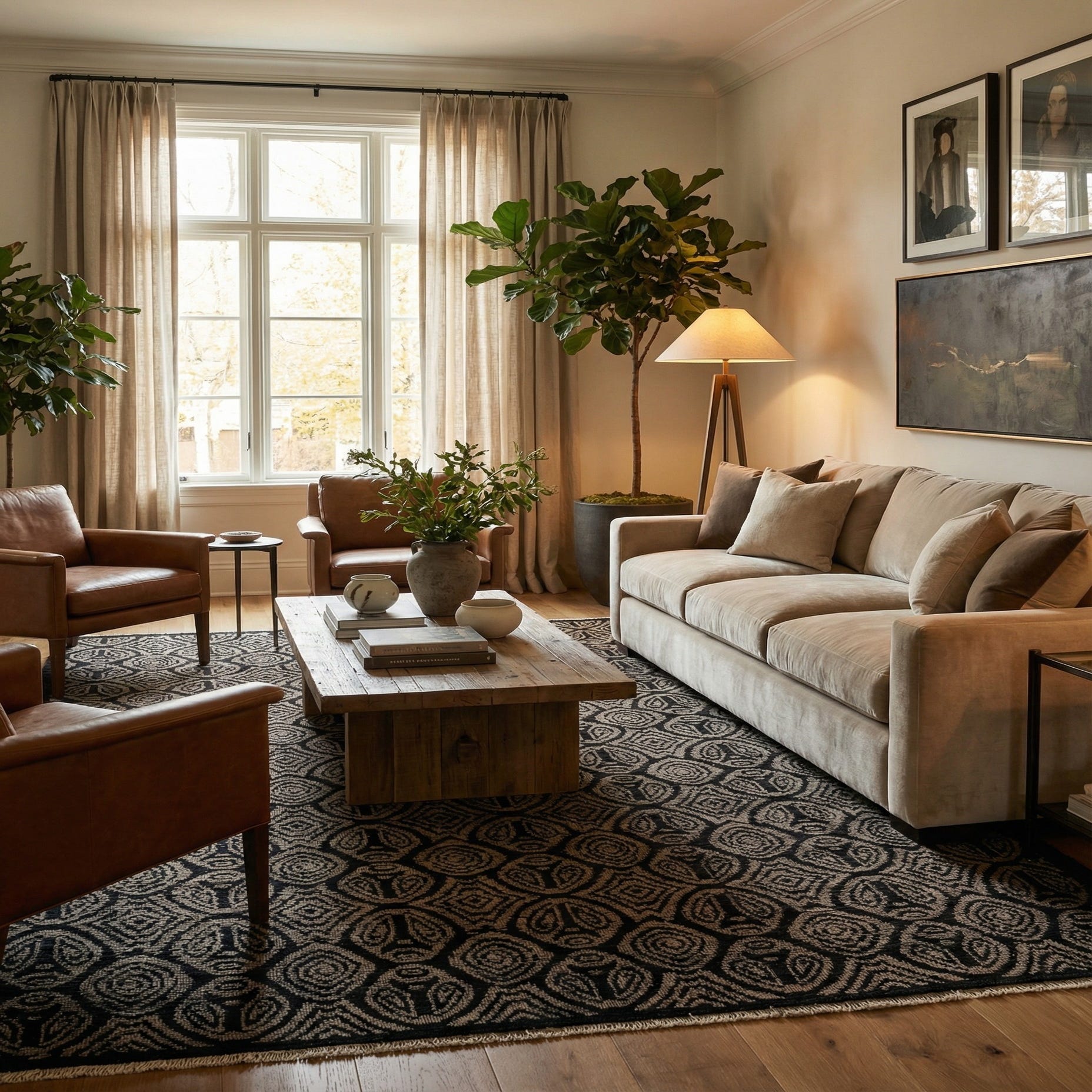 Primary color is Black. Colors in this rug include: Black, Gray.