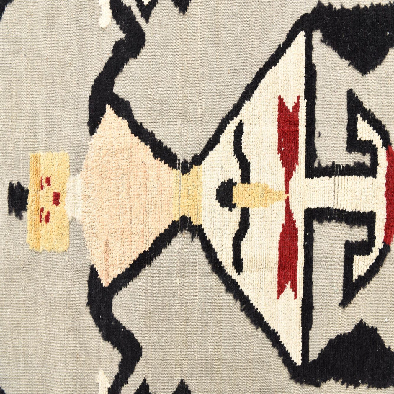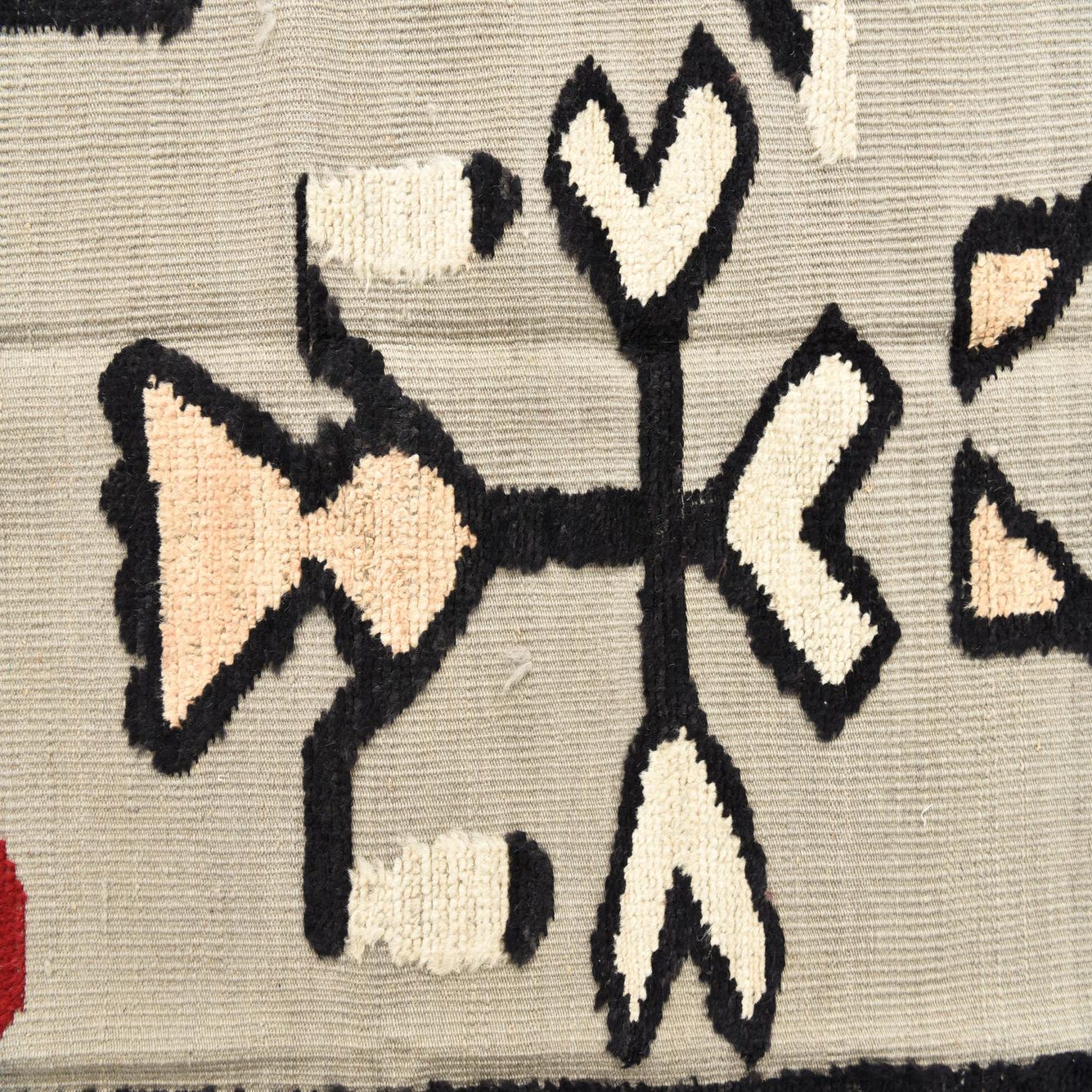 Primary color is Black. Colors in this rug include: Black, Gray, Ivory, Red, Cream, Yellow.
