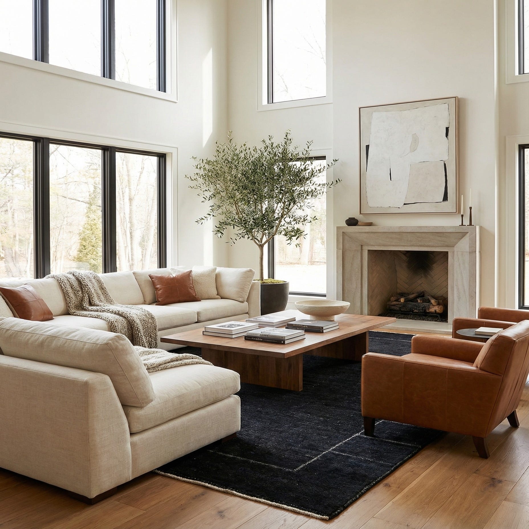 Primary color is Black. Colors in this rug include: Black, Ivory, Navy Blue.
