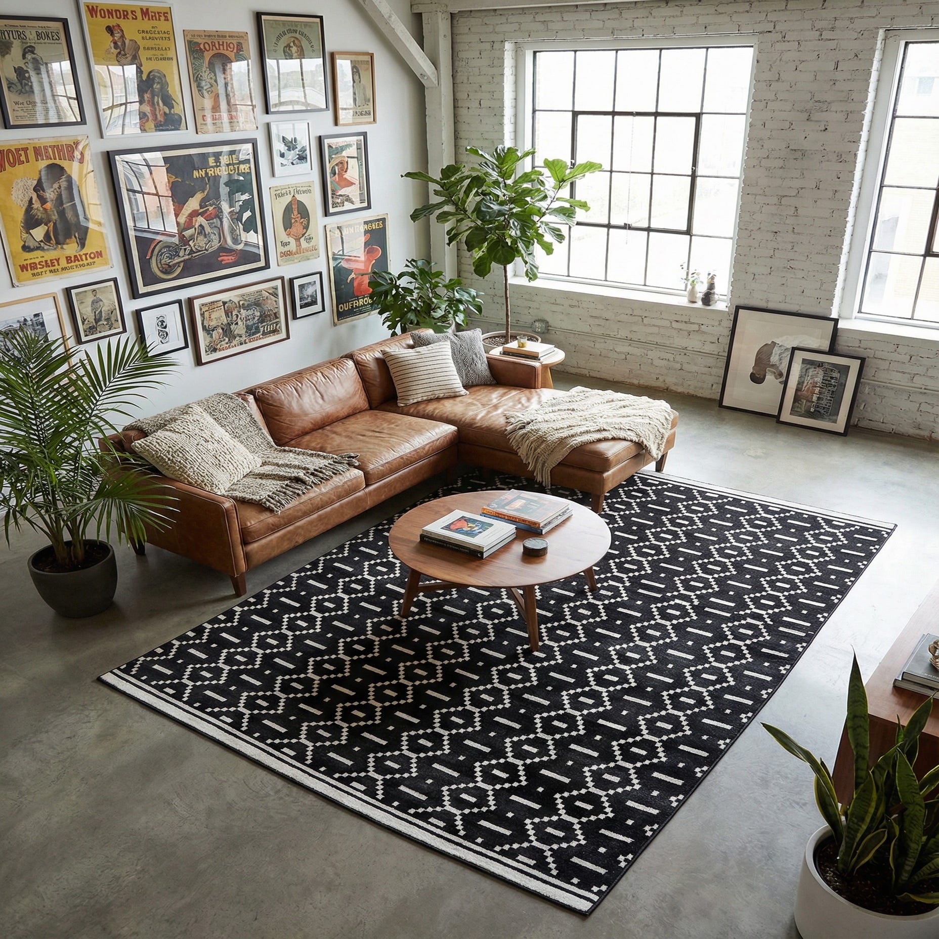 Primary color is Black. Colors in this rug include: Black, Ivory.