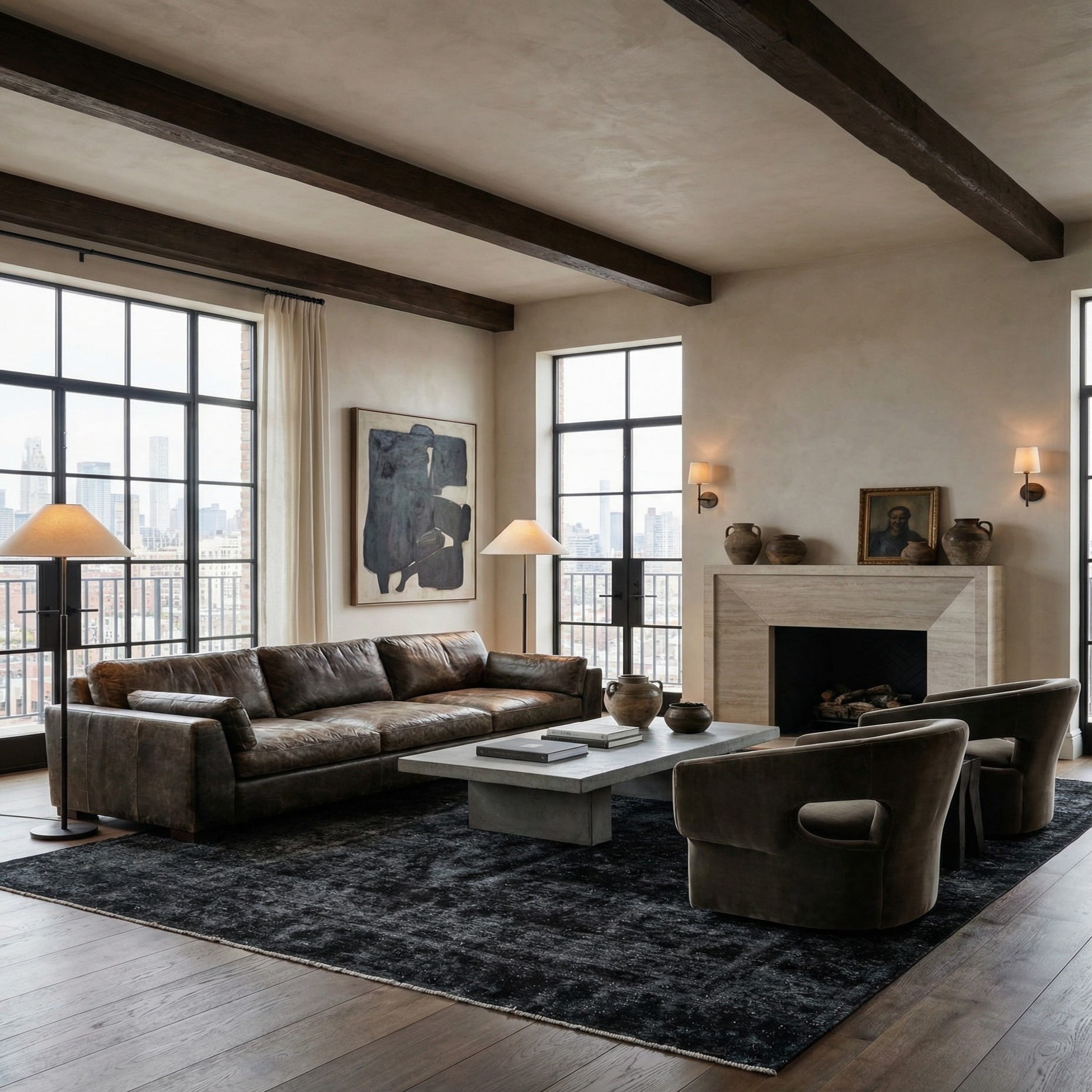 Primary color is Black. Colors in this rug include: Black, Ivory.