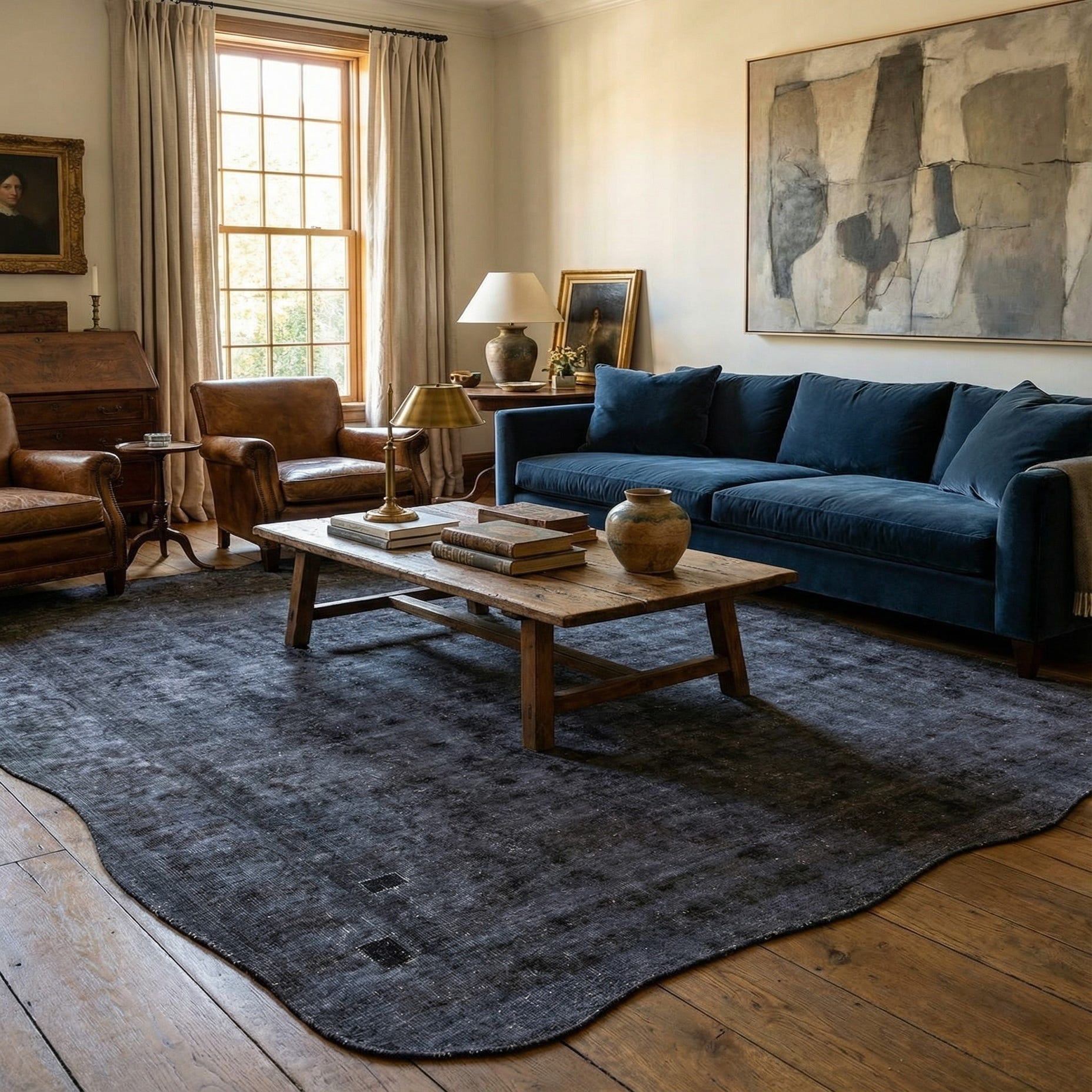 This Persian Ultra Vintage rug is an antique Persian Rug that has been washed, over-dyed, and then shaved down to a low pile. Look at the detail pictures to fully appreciate the uniqueness of this piece.