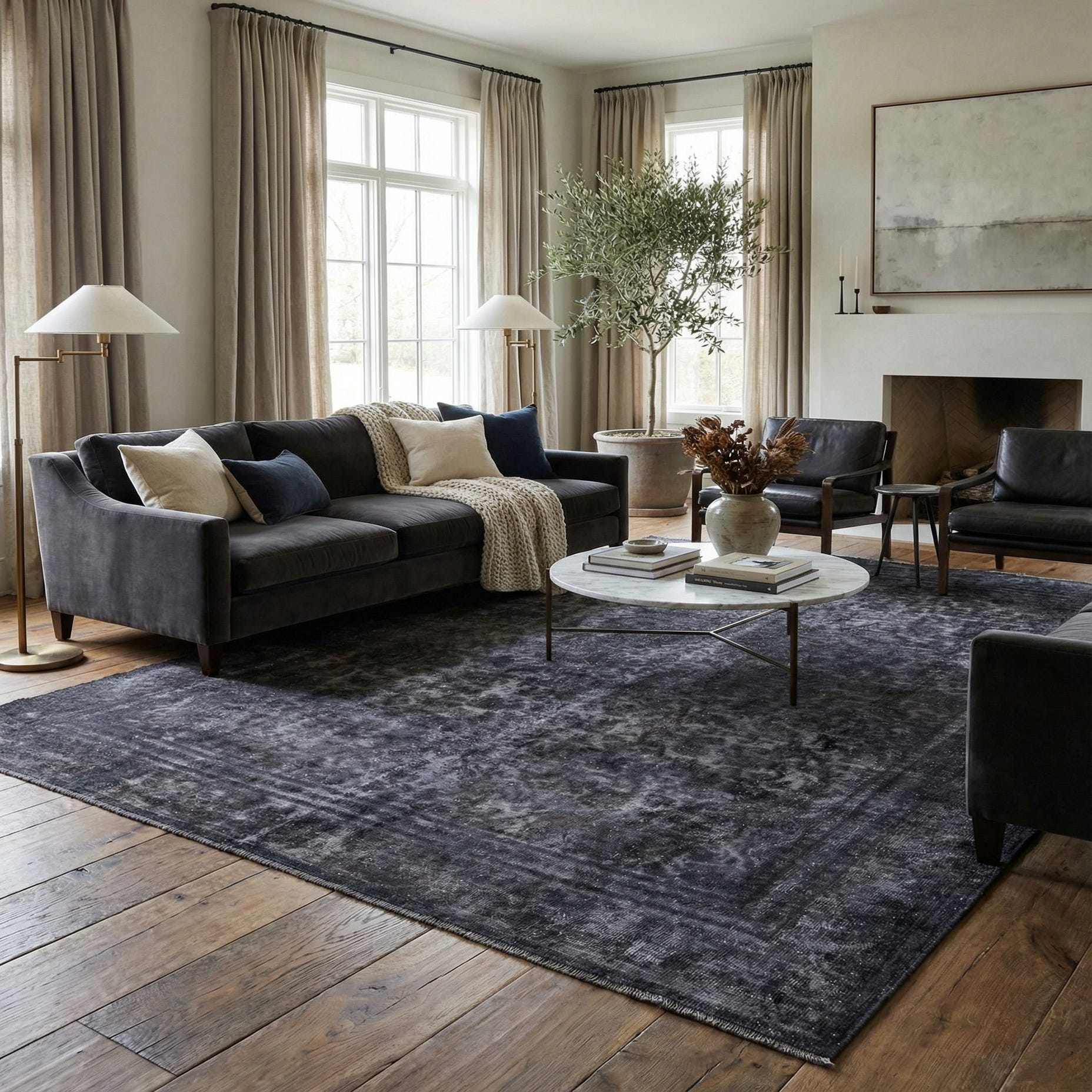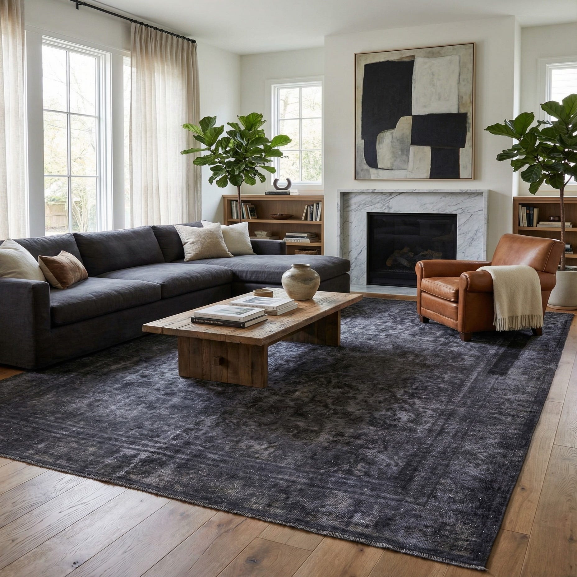 Primary color is Black. Colors in this rug include: Black, Gray.