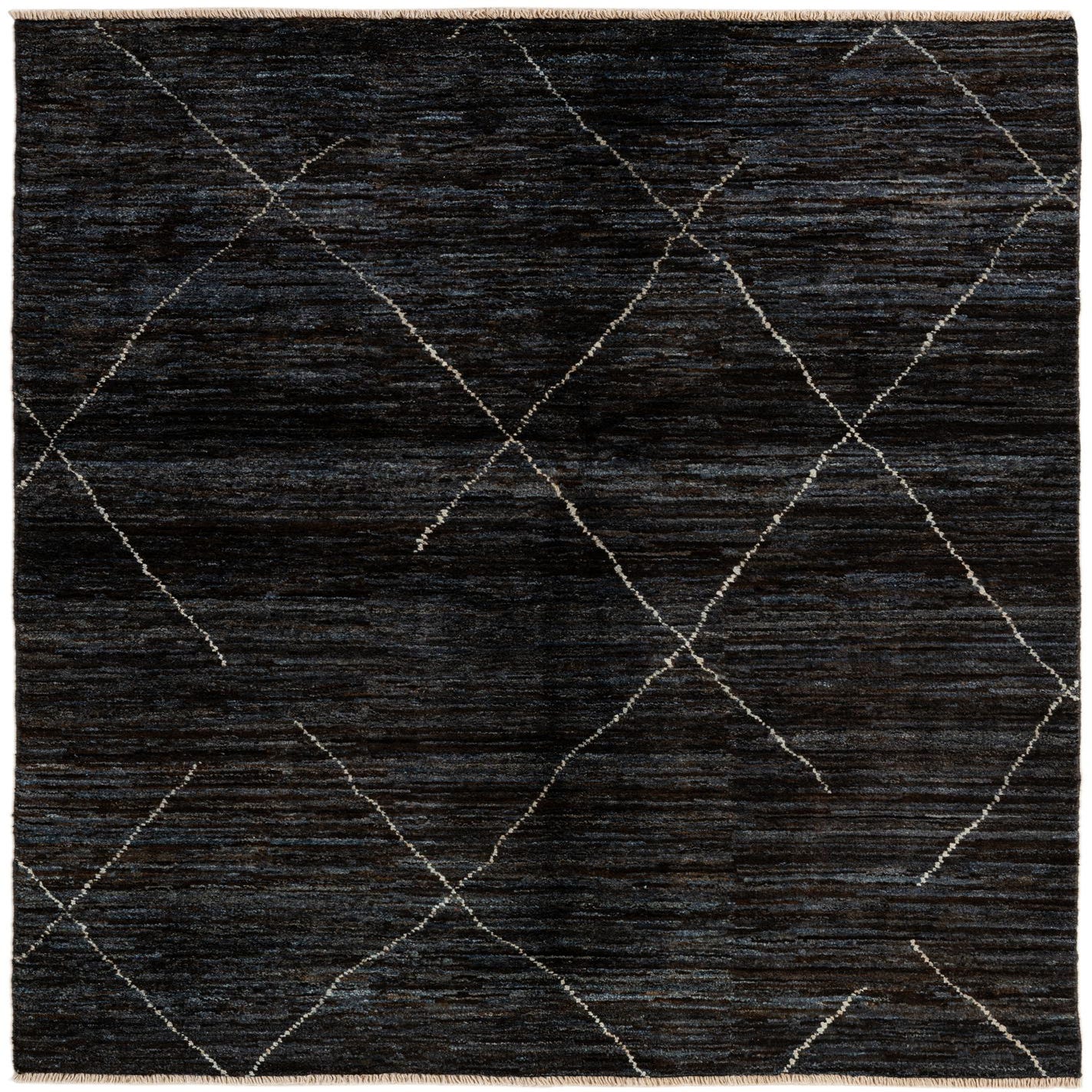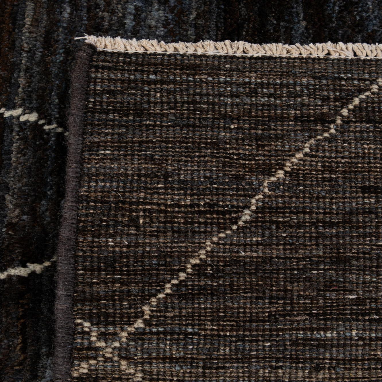Primary color is Black and Blue. Colors in this rug include: Black and Blue, Ivory.