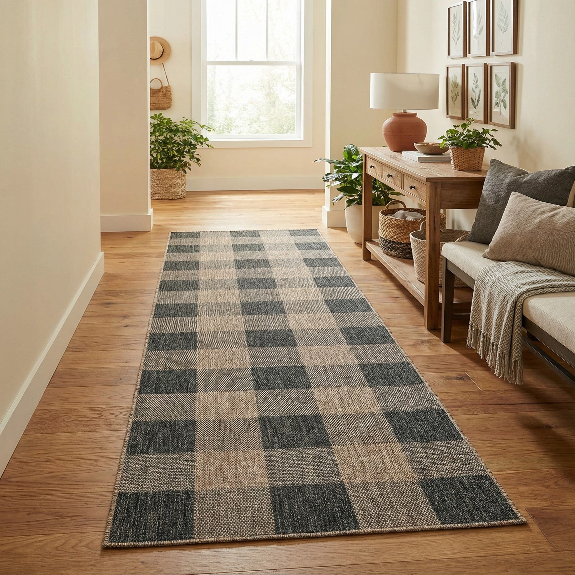 Detail image of 2' 7 x 12'  Washable Checkered Indoor / Outdoor Runner Rug