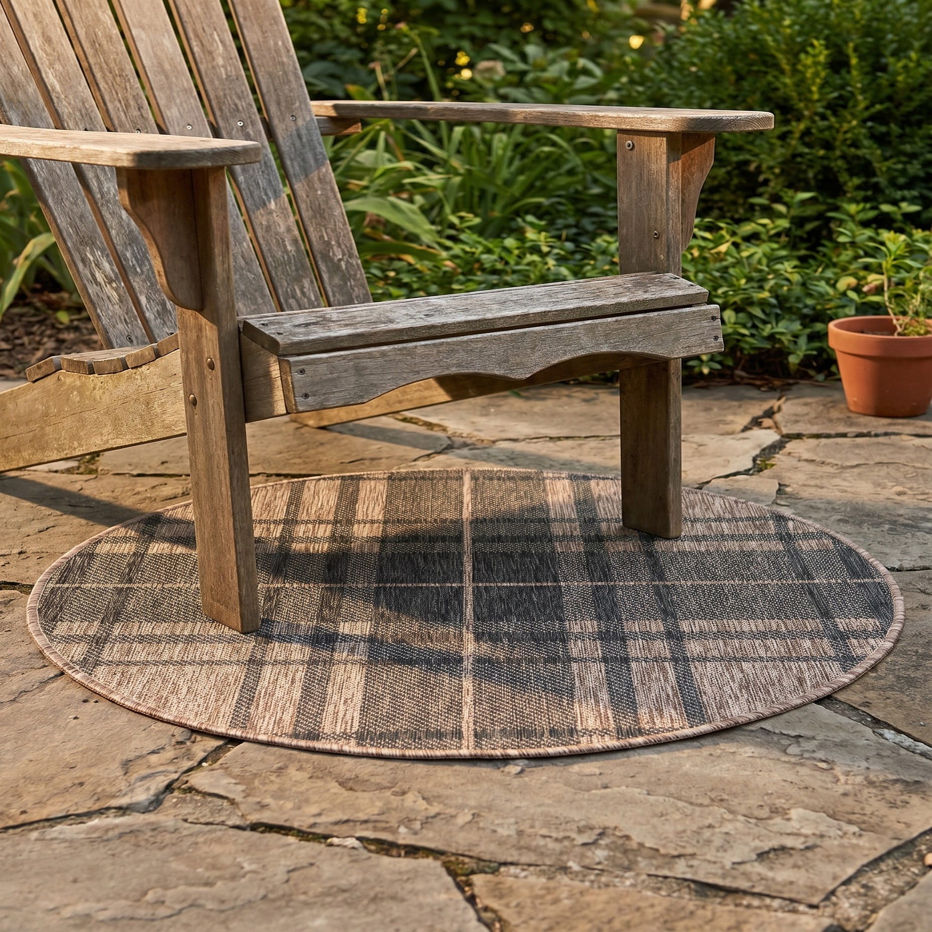 3' x 3' Easy-Clean Checkered Indoor / Outdoor Round Rug