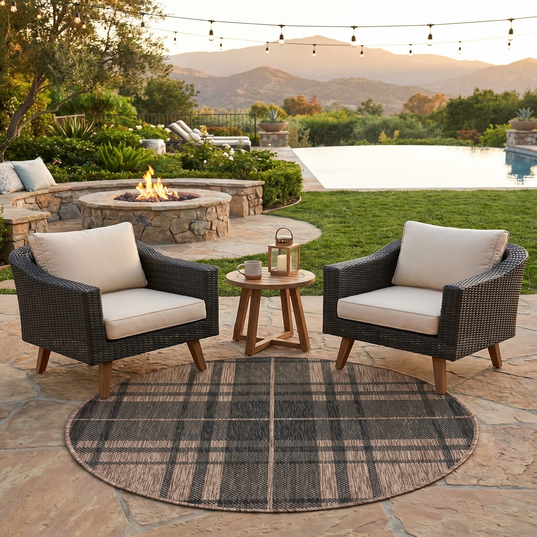 3' x 3' Easy-Clean Checkered Indoor / Outdoor Round Rug