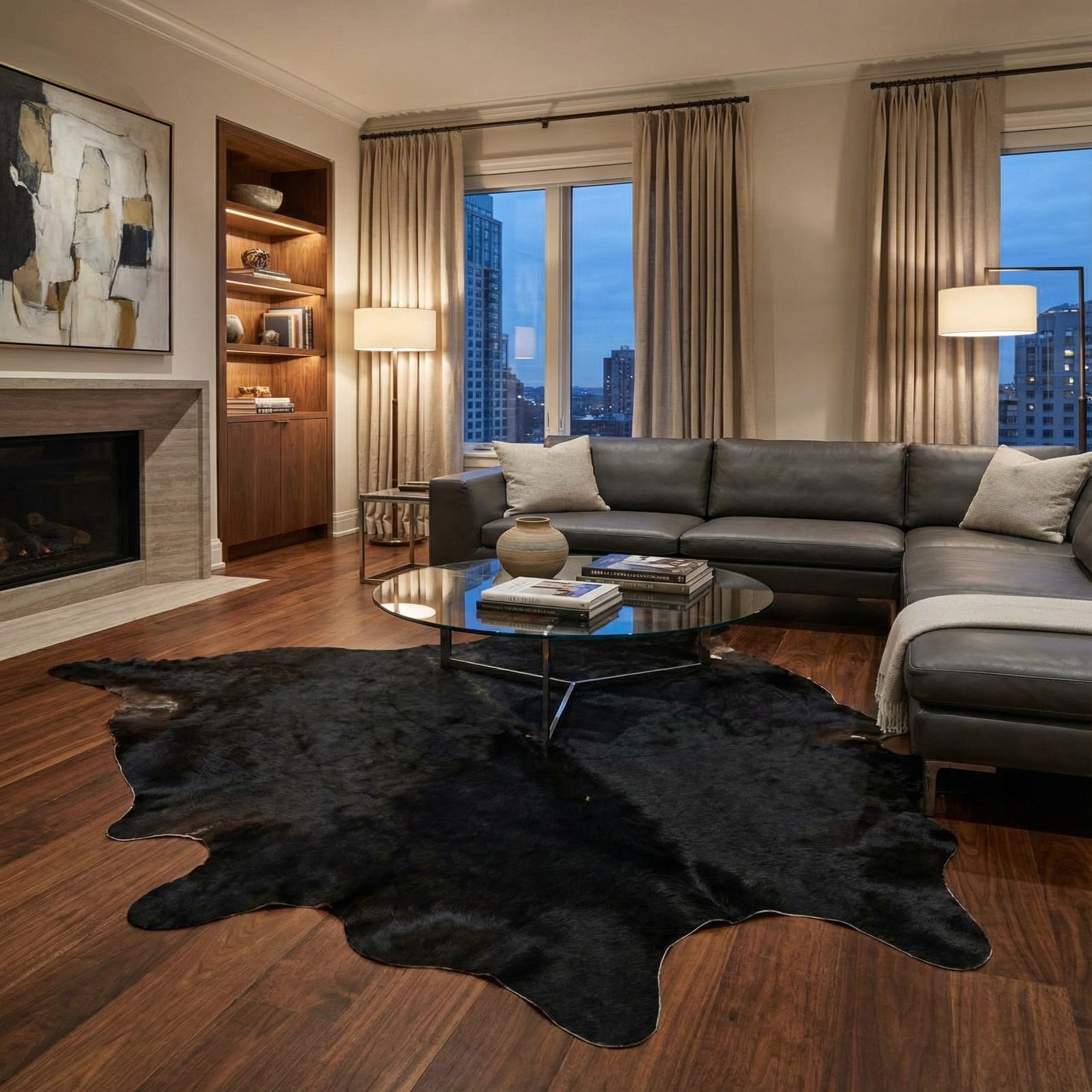 Primary image 5' 5 x 6' 8 Cowhide Leather Rug