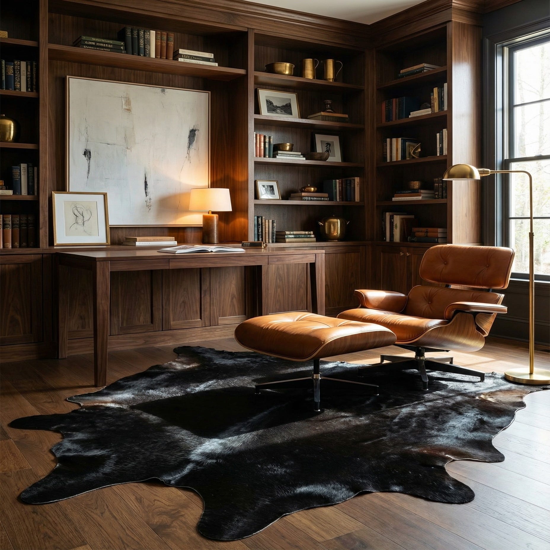 6' 6 x 6' 11 Cowhide Leather Square Rug