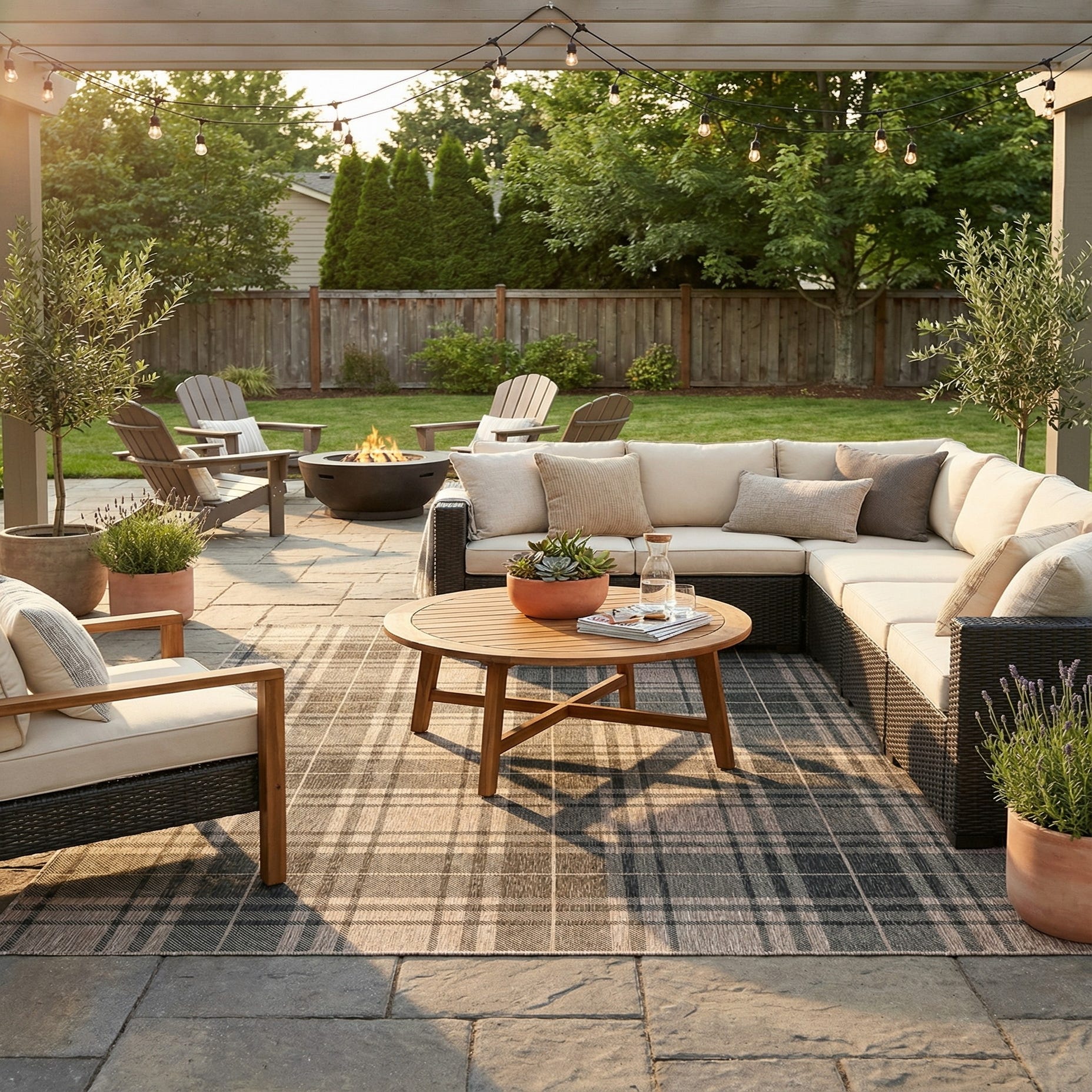 9' x 12' Washable Checkered Indoor / Outdoor Rug