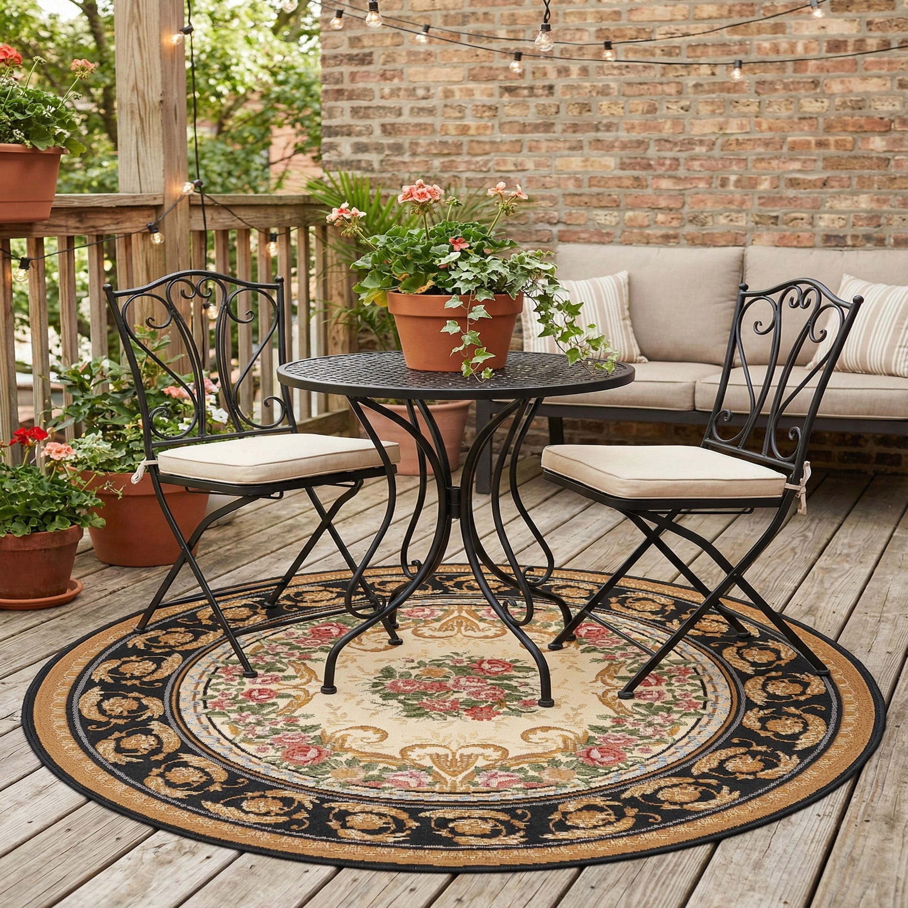 4' x 4' Washable Traditional Indoor / Outdoor Round Rug